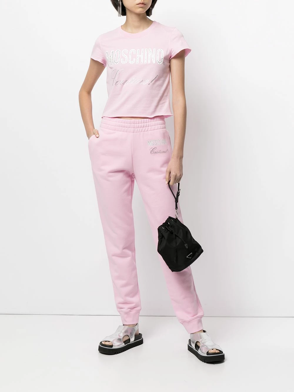 Moschino showcases its penchant for logomania with these track pants. Crafted from cotton, the pair boasts a crystal-embellished Couture logo that adds a sports-luxe feel to the design.