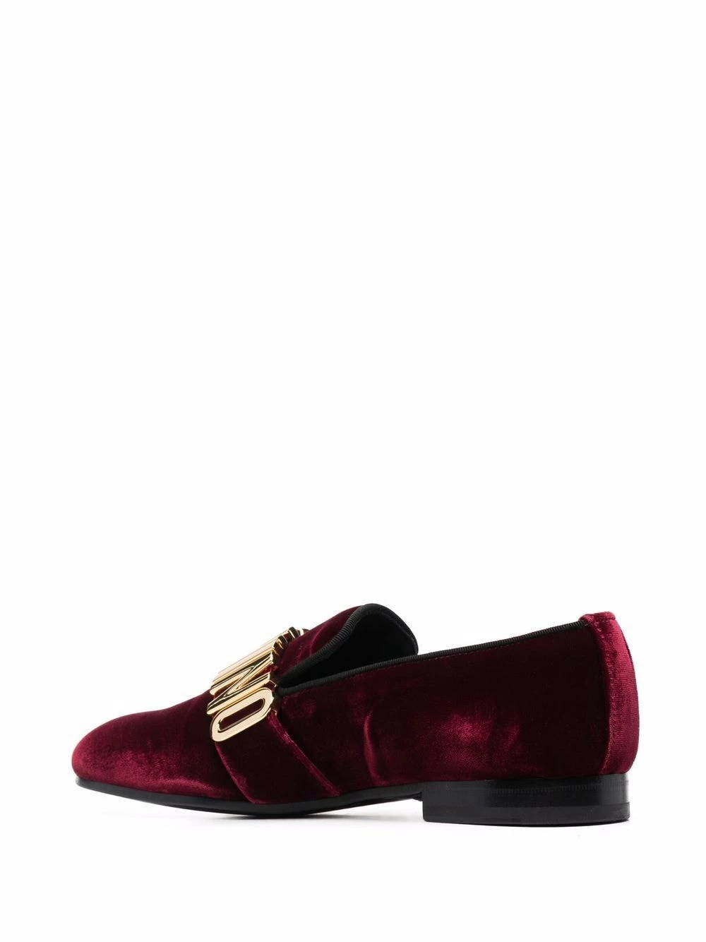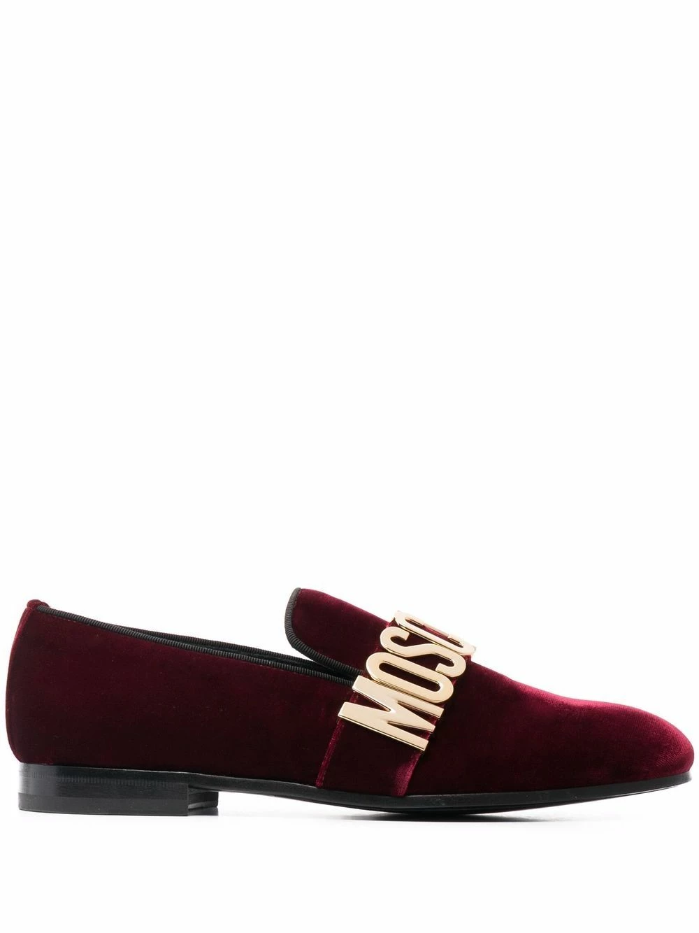 Moschino’s gold-tone logo lettering remains one of the label’s most iconic hallmarks and decorates the forefoot of these velvet loafers. Dressed in a bordeaux red hue, the almond toe silhouette benefits from a branded insole and easy-to-wear slip-on design.