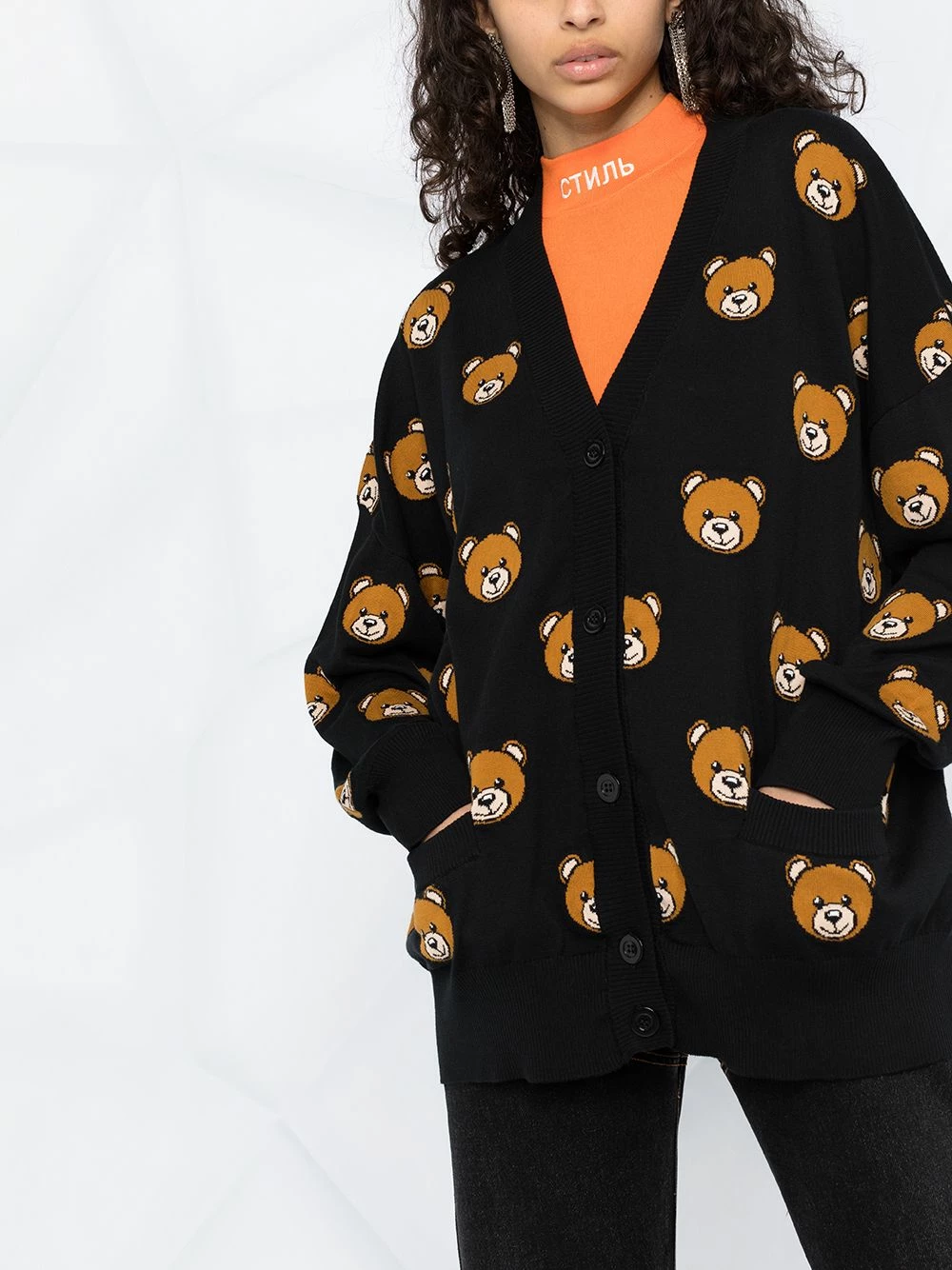 Bills, responsibilities, grocery shopping…adulting sucks. So, hold on to your youth for a little longer with the help of this teddy bear jacquard knit cardigan from Moschino. Forever young.