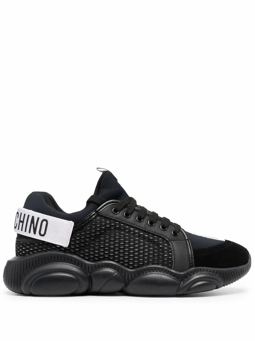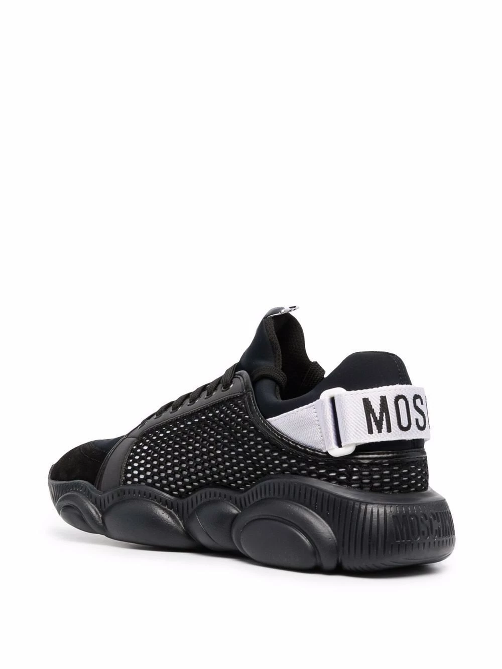 Since the brand’s inception in 1983, Moschino has been known for creating designs with an innovative twist. Showcased in this pair of lace-up sneakers, the contemporary oversized rubber sole; which fits in with current streetwear trends, is crafted from the iconic Teddy motif.