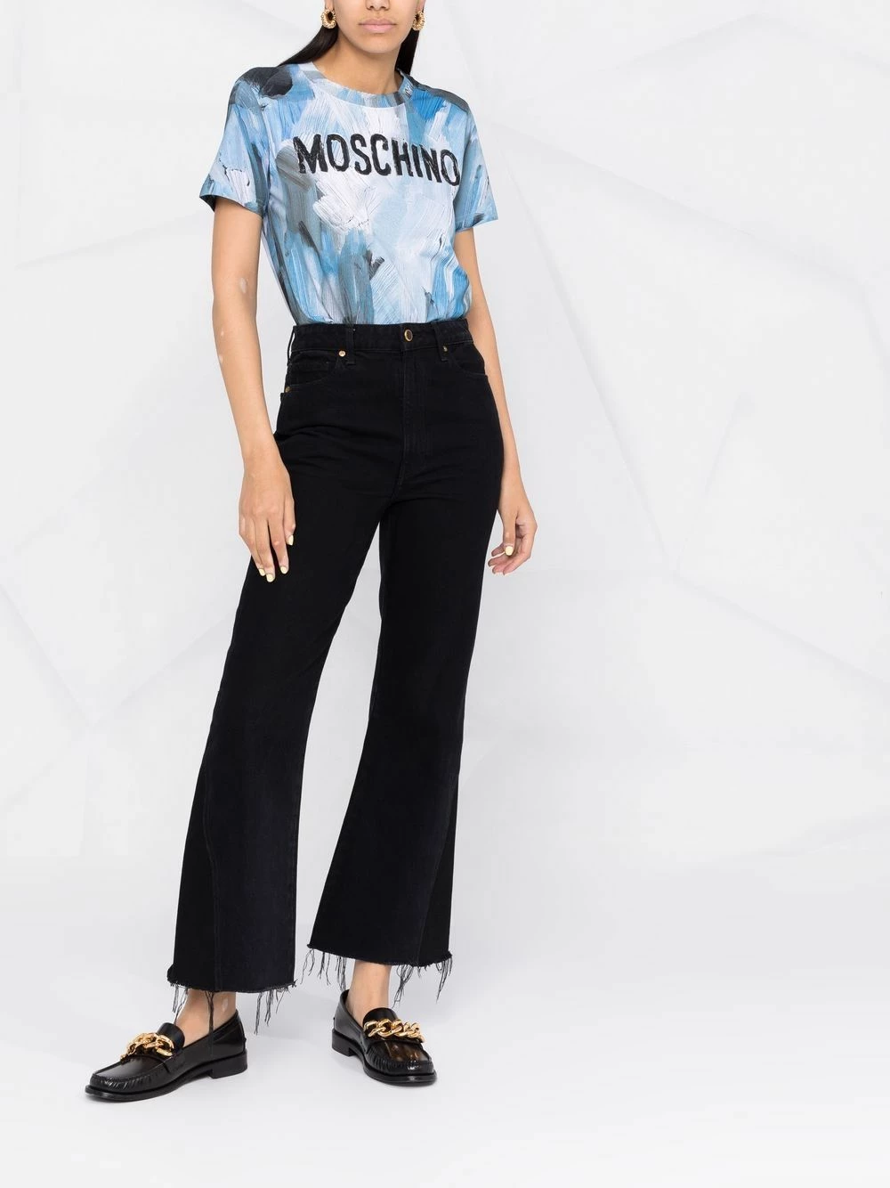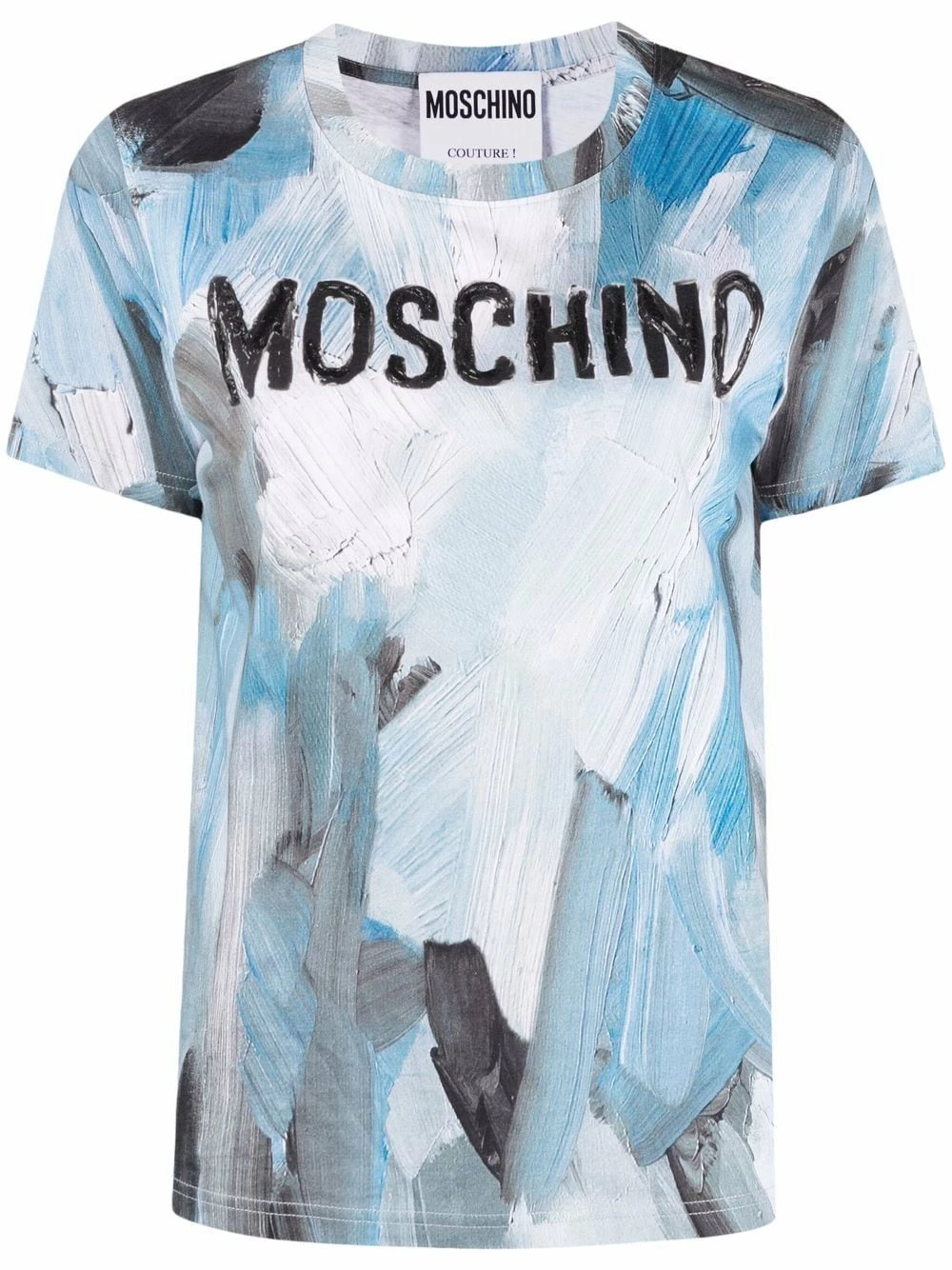 Master in bold casual wear, Moschino presents this brushstroke-print T-shirt. Crafted from cotton in blue, black and white hues, the piece is finished with a logo print at the chest for a recognisable look.