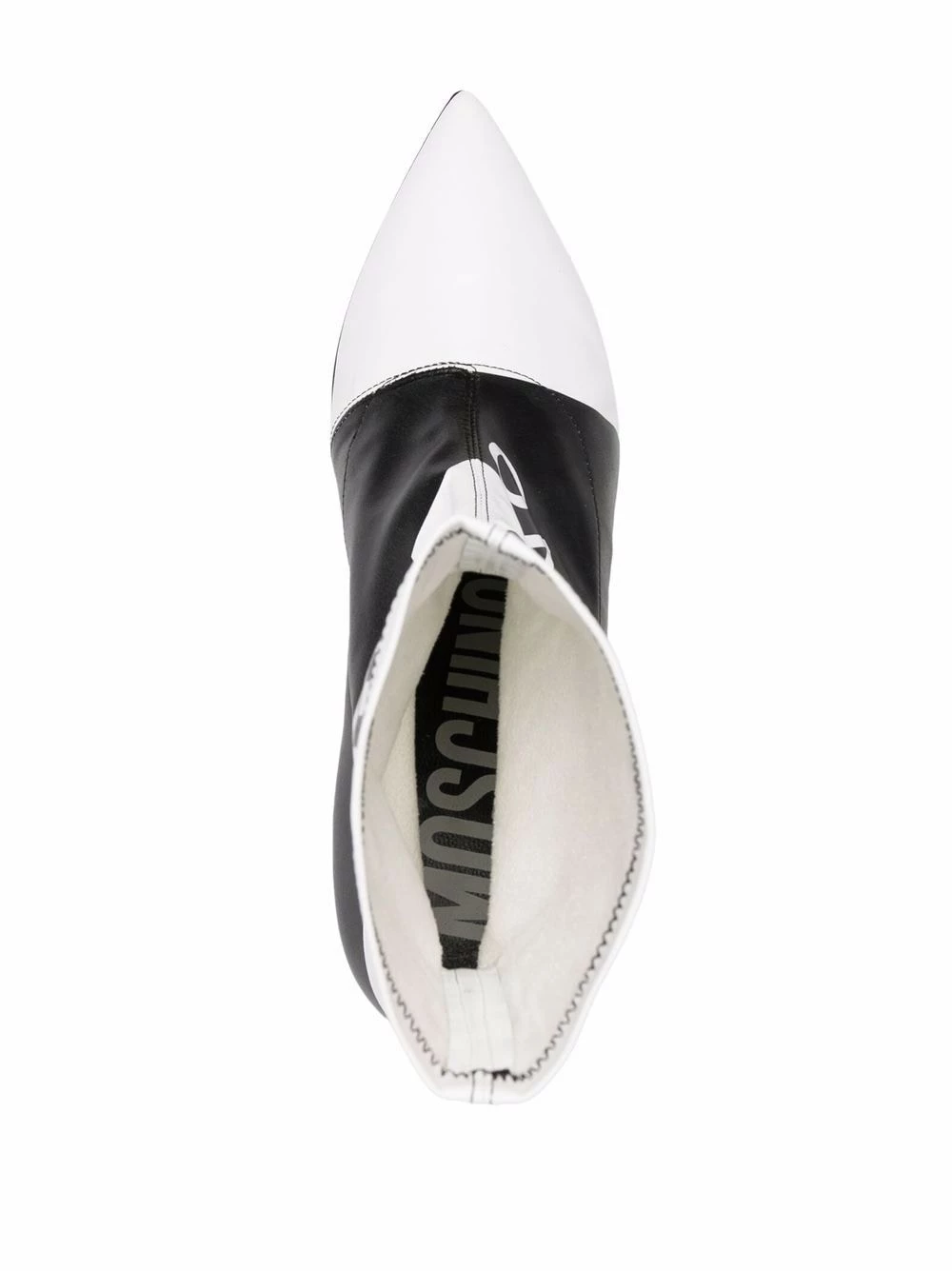 A classic motif from Moschino, the brand’s Double Question Mark print can be found acorss these stiletto ankle boots. Monochrome stripes continue the brand’s playful aesthetic while veering away from its signature vibrant colour palette.