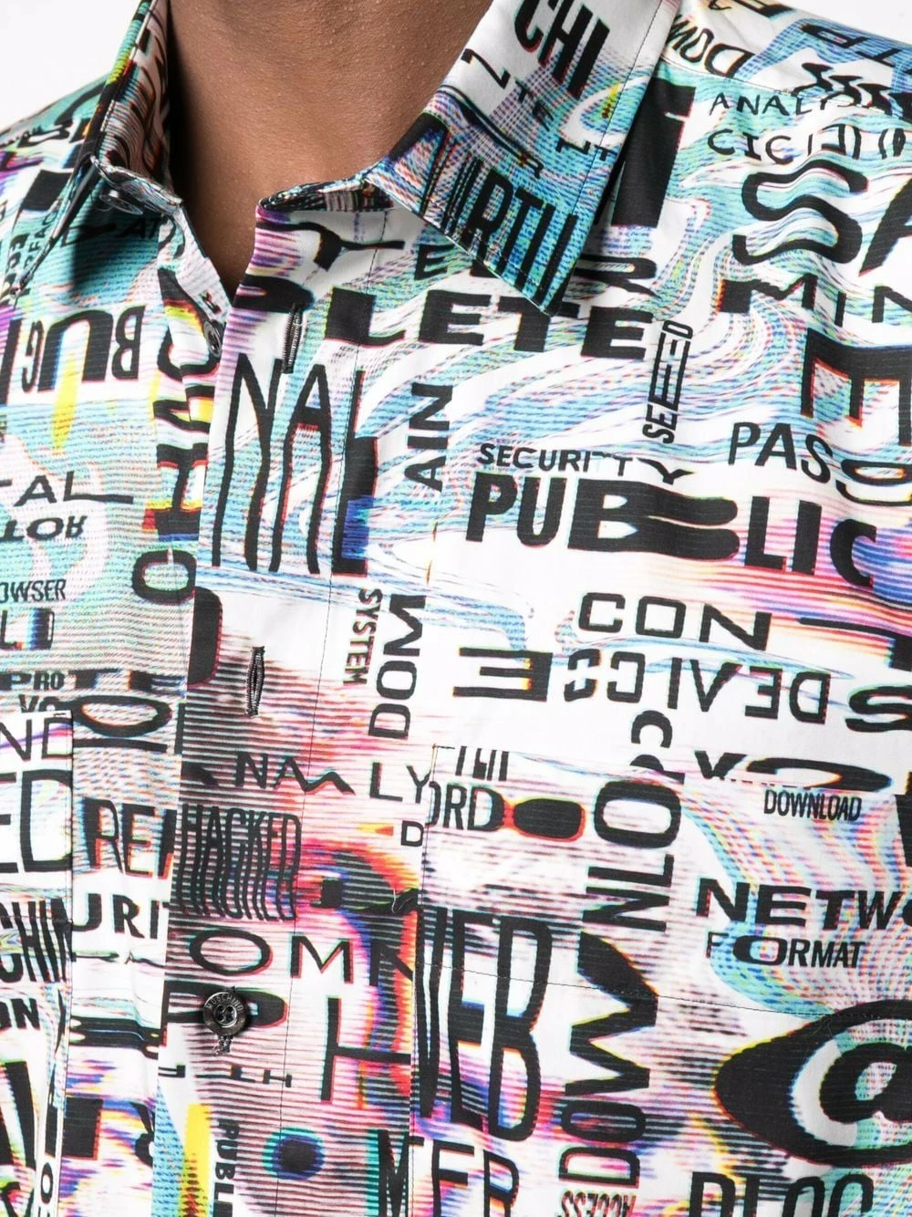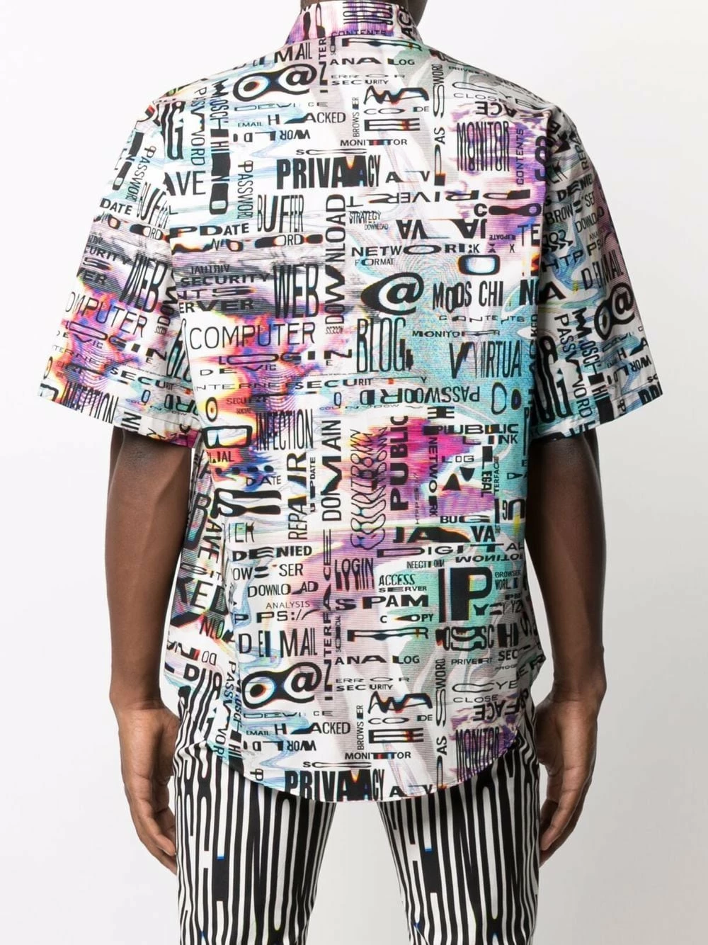 Celebrate your love for all things Moschino. Cut to a comfortable short-sleeve silhouette, this crisp cotton piece is decorated with an all-over Glitch print. Don’t mind if we do.