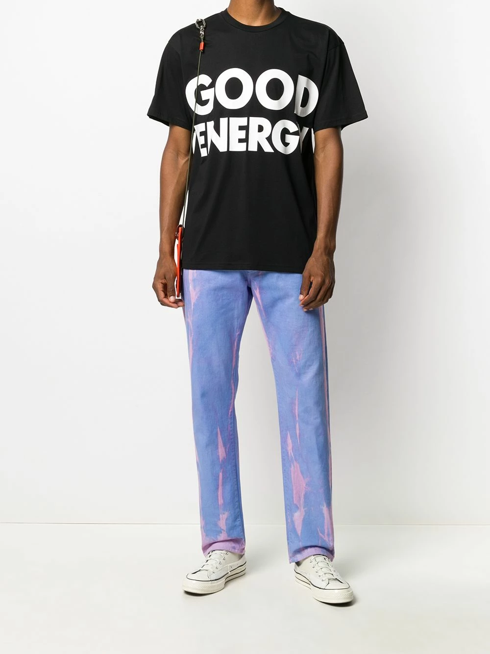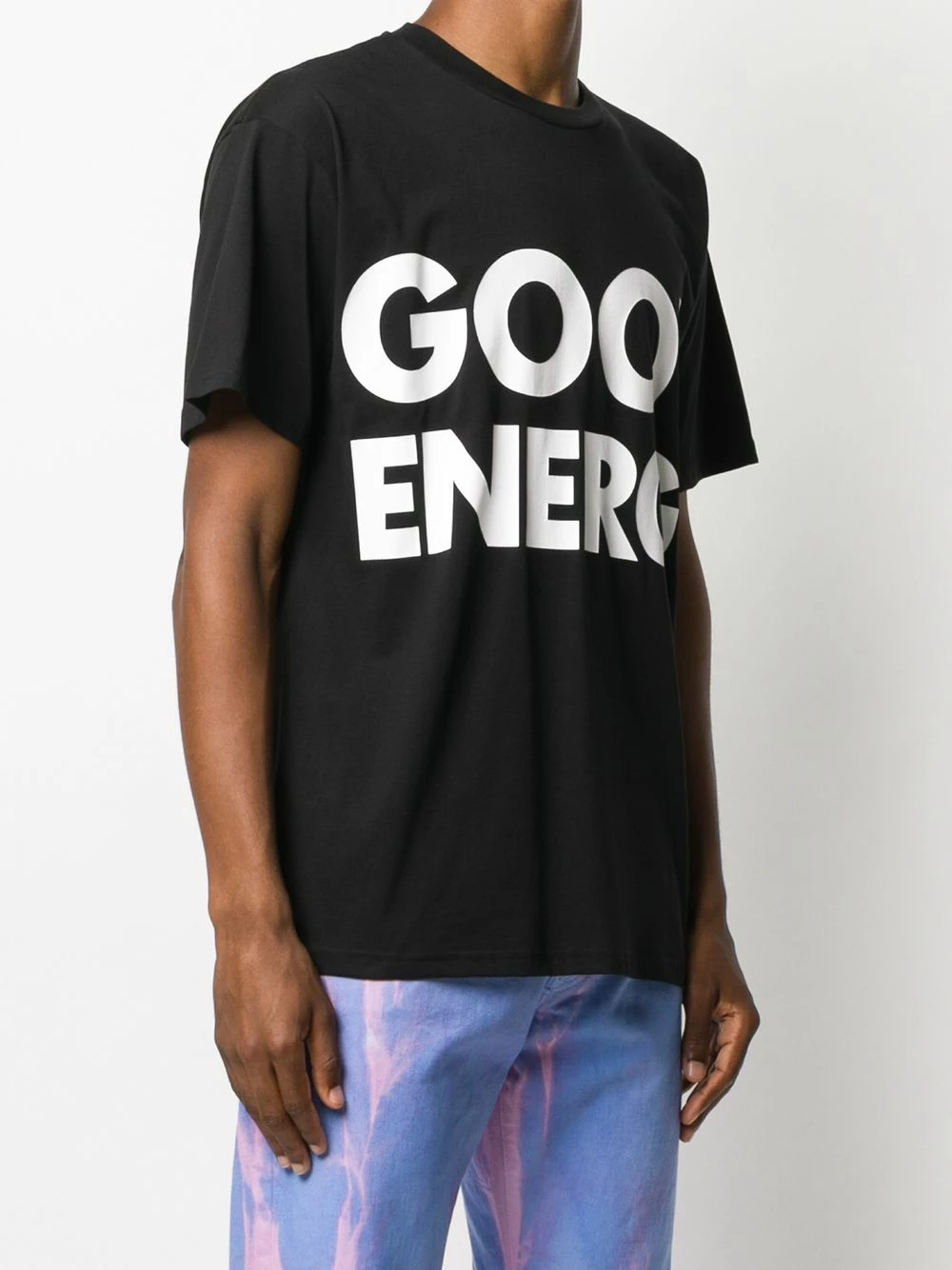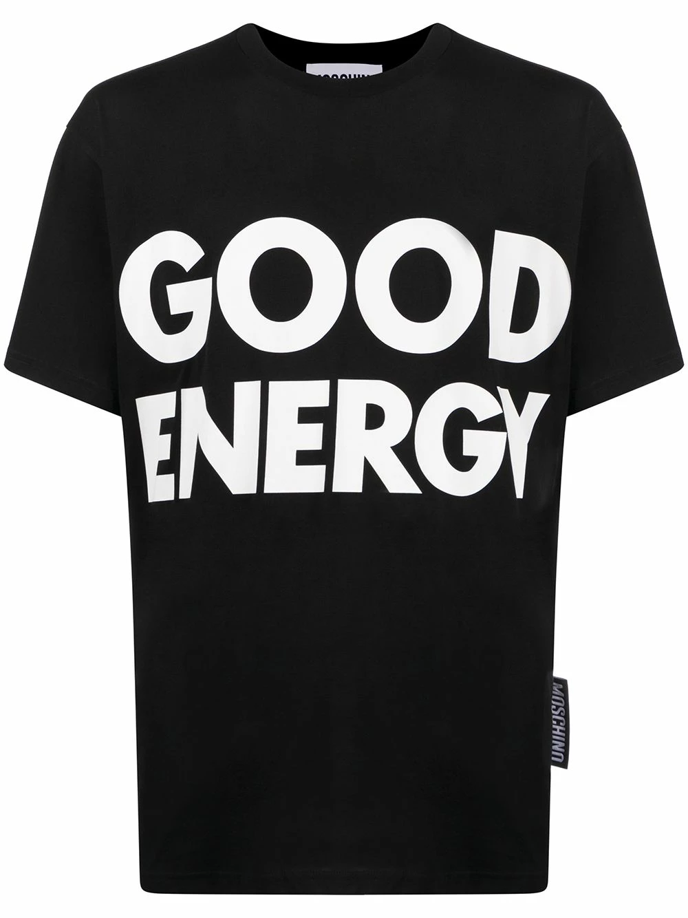 Moschino’s short sleeve T-shirt is giving us major BTE aka Big T-shirt Energy. It has been cut from soft cotton to a relaxed fitting shape and features a bold slogan print across the front. Good energy all round.