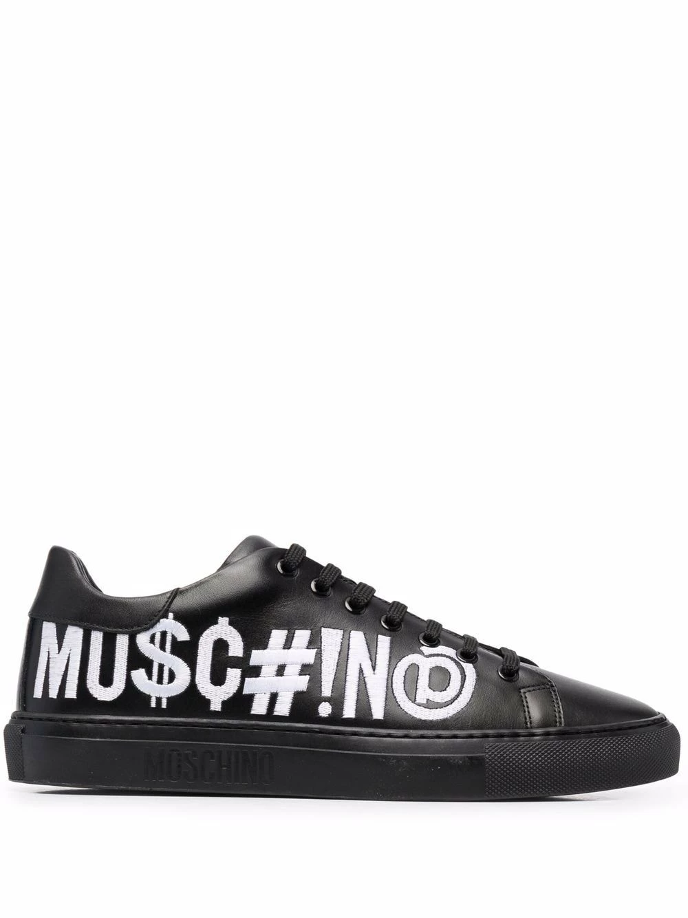 Crafted in Italy, these low-top leather sneakers from Moschino are boldly patterned with the brand’s Symbols logo embroidery to one side. Comfort and style combined, they will make a great choice for off-duty days.