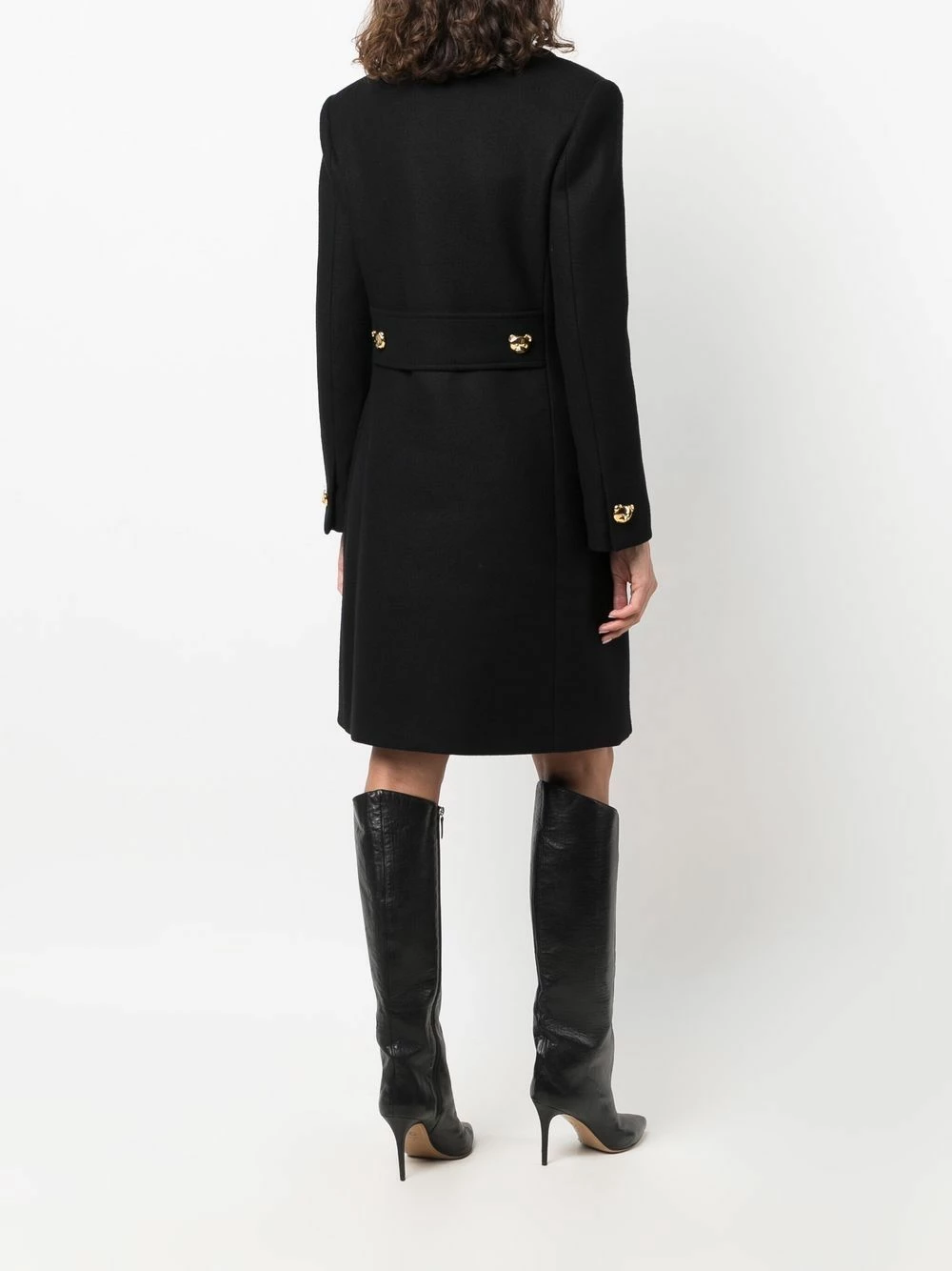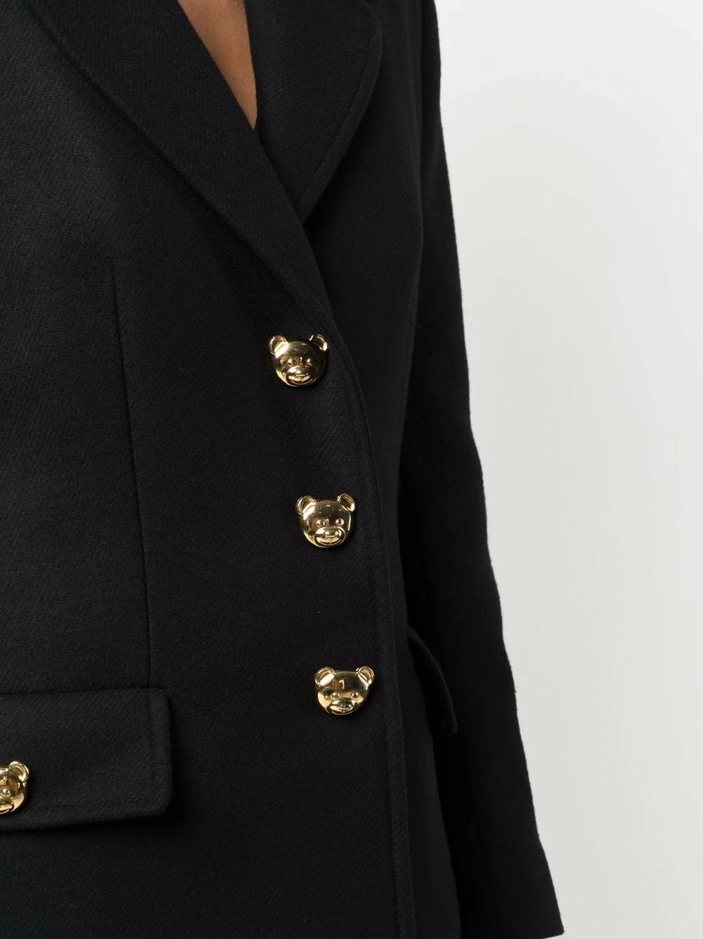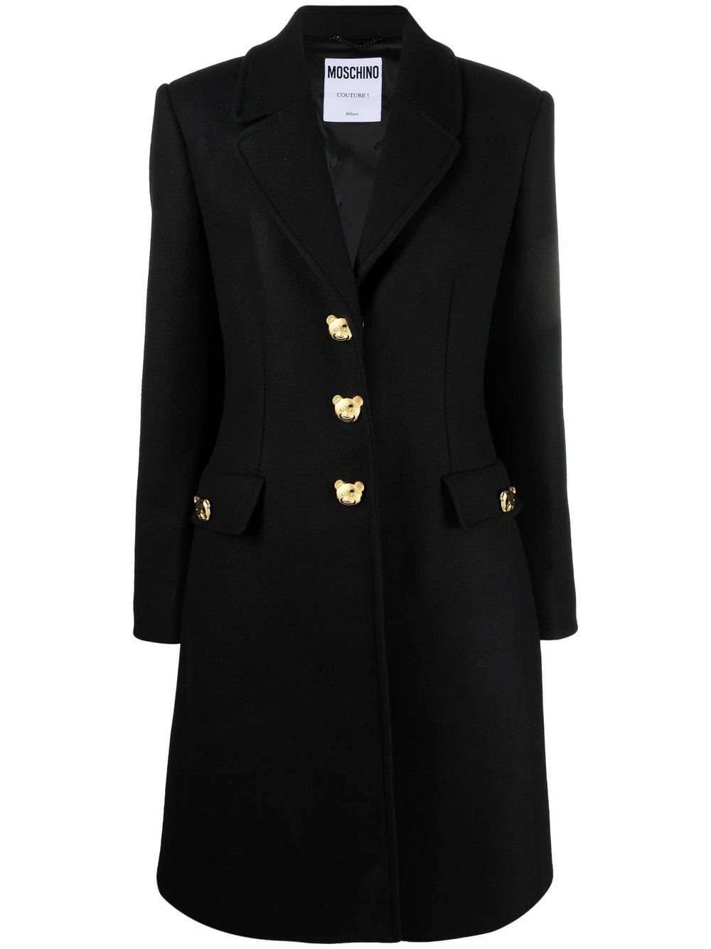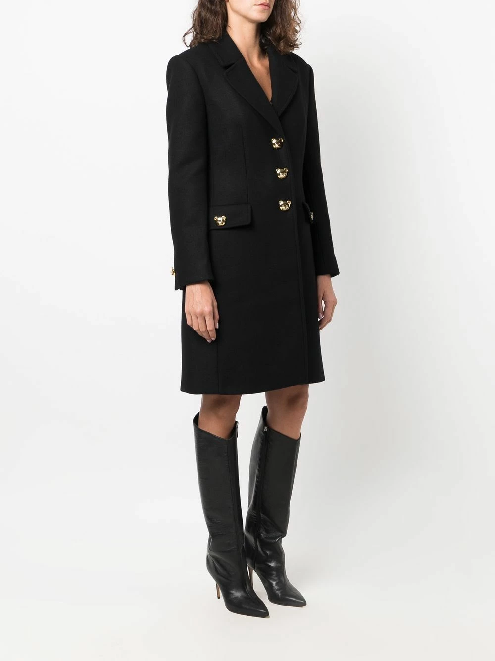 Moschino’s iconic teddy bear motif frequently takes on many iterations, showcasing the label’s playful nature. This signature is featured on this single-breasted coat in button form, making the design instantly recognisable.ย