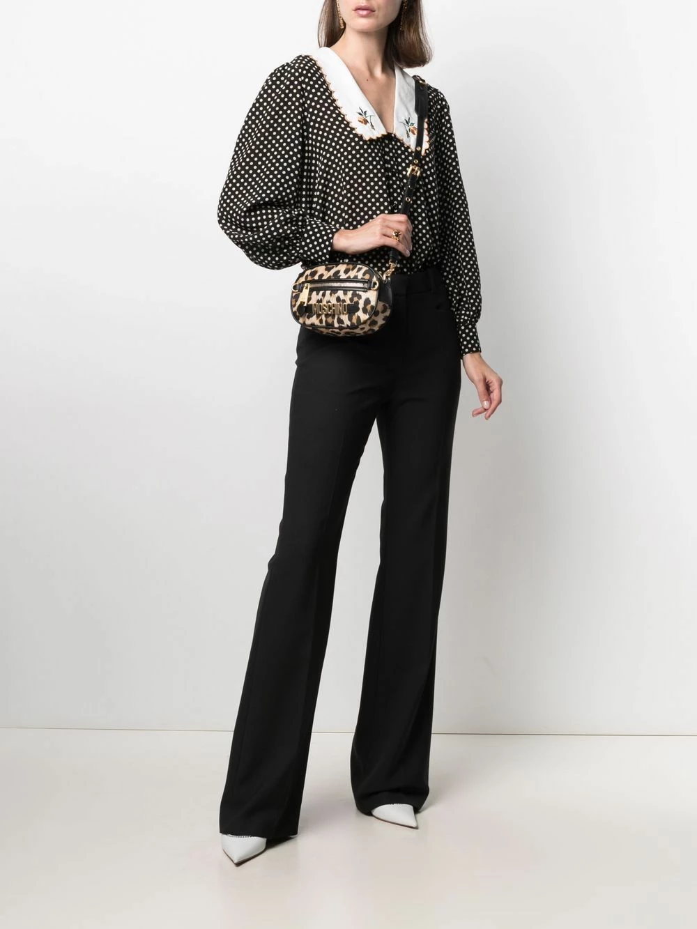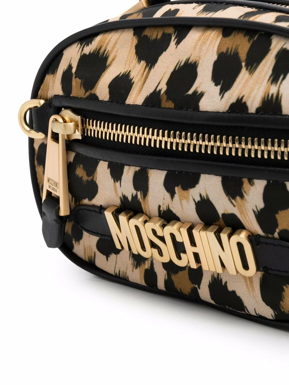 Go wild for your next accessory update. Moschino makes an impact with this leopard print and gold-tone logo plaque design. You’ve got it in the bag.
