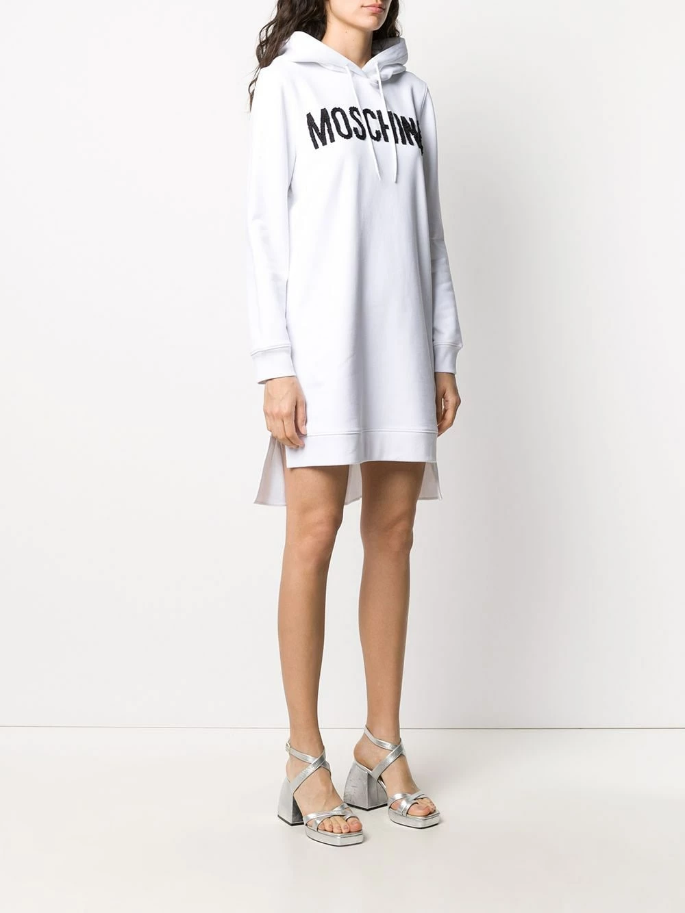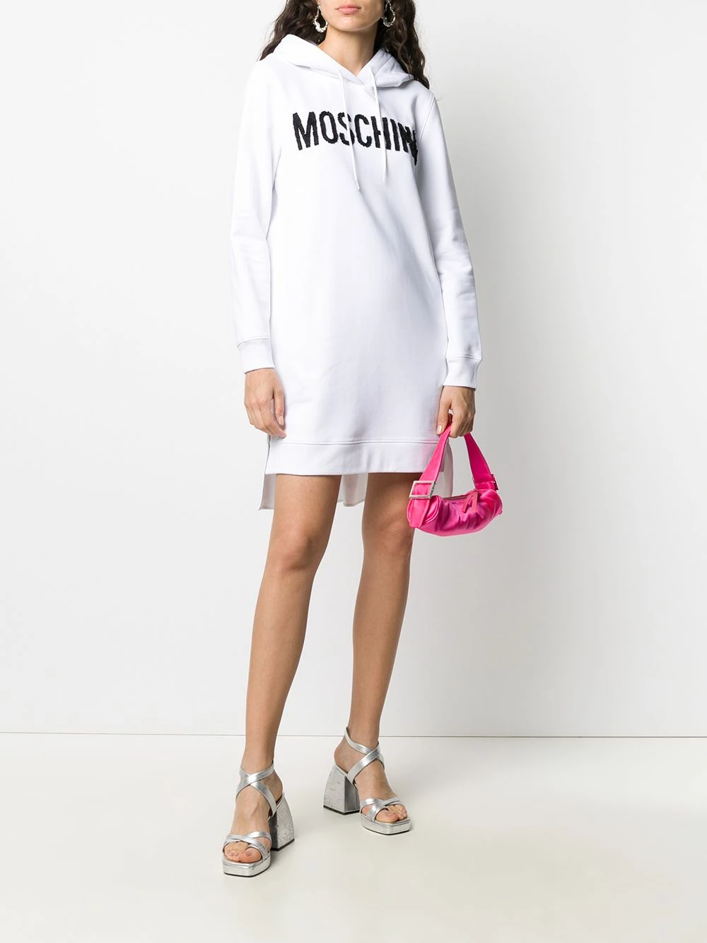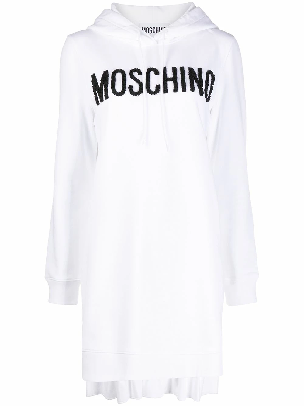 Offering up the perfect blend of casual and sophistication, this logo detail hooded dress from Moschino is just your thing. Featuring a classic drawstring hood and ruffled hem, its suitable for both home wear and daytime outings. You won’t ever want to take it off.ย