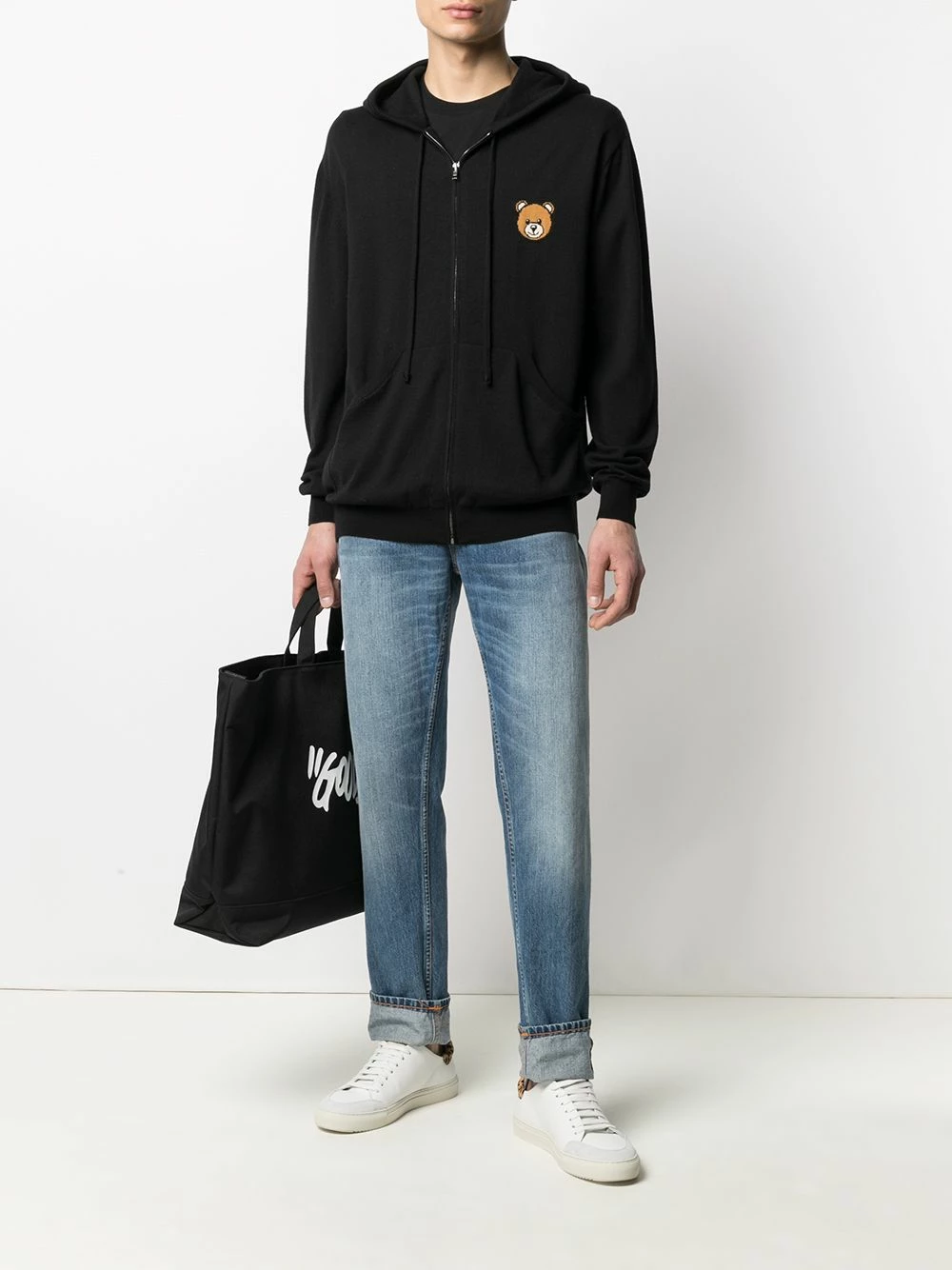 You may be considered a little mature to still hug your childhood stuffed toy. However Moschino’s teddy bear hoodie is ready and willing to embrace you with cotton-virgin wool blend comfort. Zip in and feel much better about… everything.