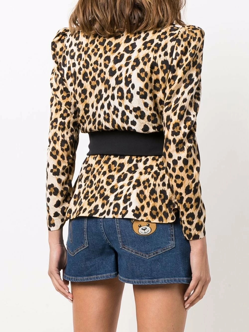 Animal motifs are a key component of Dolce & Gabbanaโs aesthetic, with bold leopard prints appearing throughout the brandโs collections. Capturing the brandโs aesthetic, this blouse boasts an all-over print and a tied waist.ย