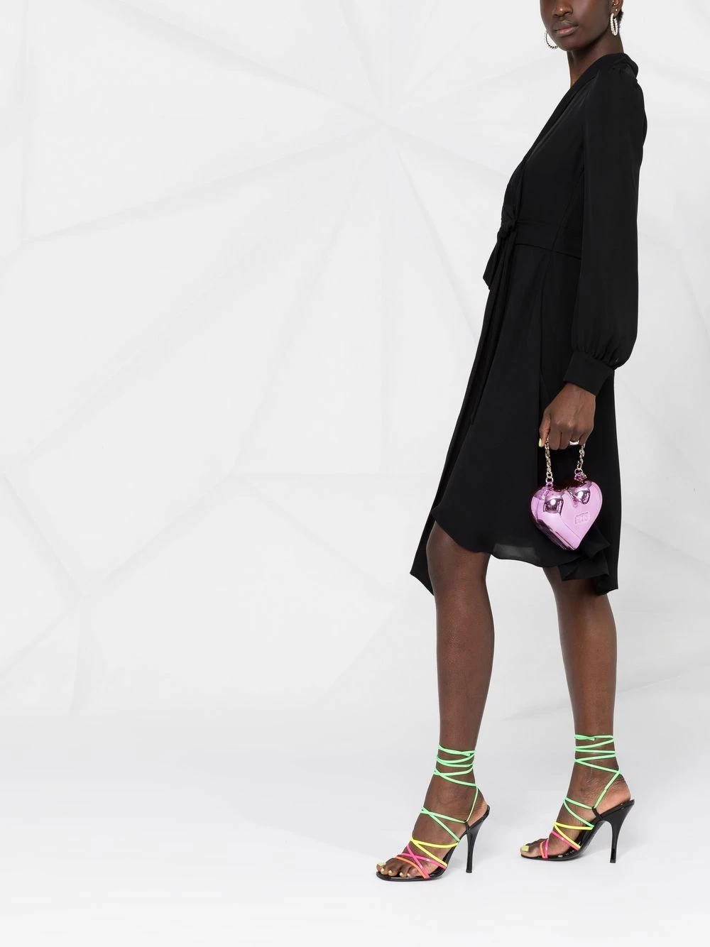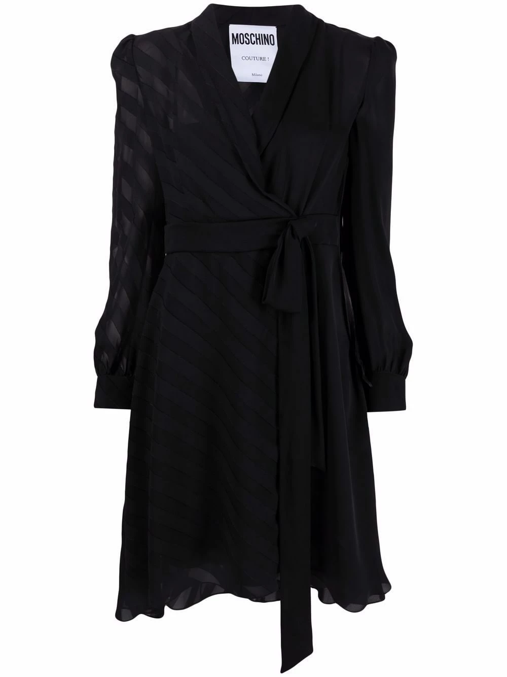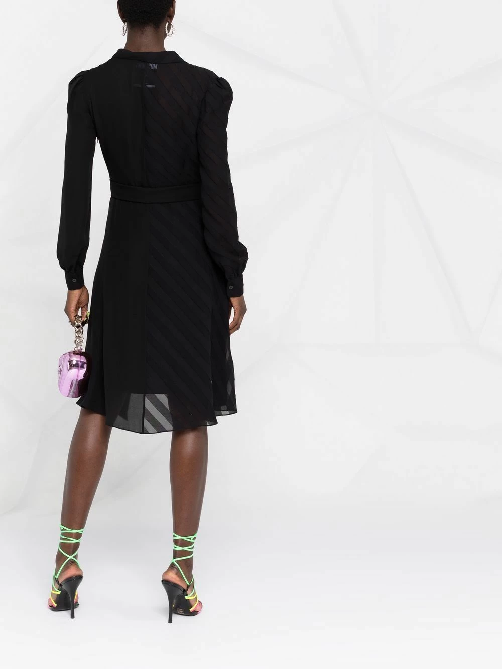 A champion in vibrant colour palettes and playful prints, Moschino takes a step back to present this floating silk dress. Detailed with a diagonal stripe pattern, gathered details and adjustable tied waist, the pared-back silhouette still carries a distinct Moschino edge.