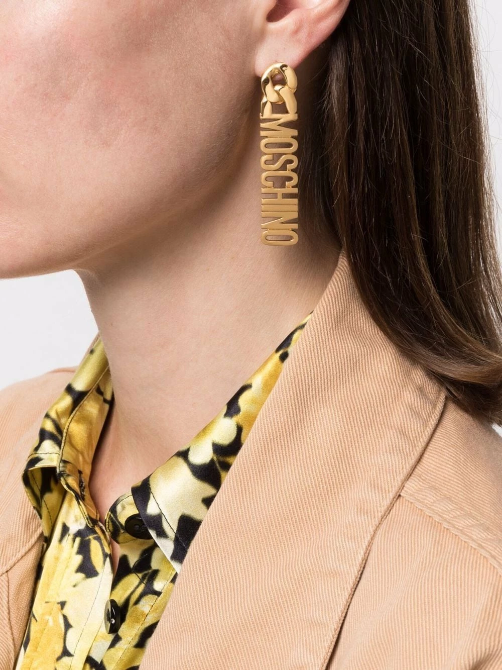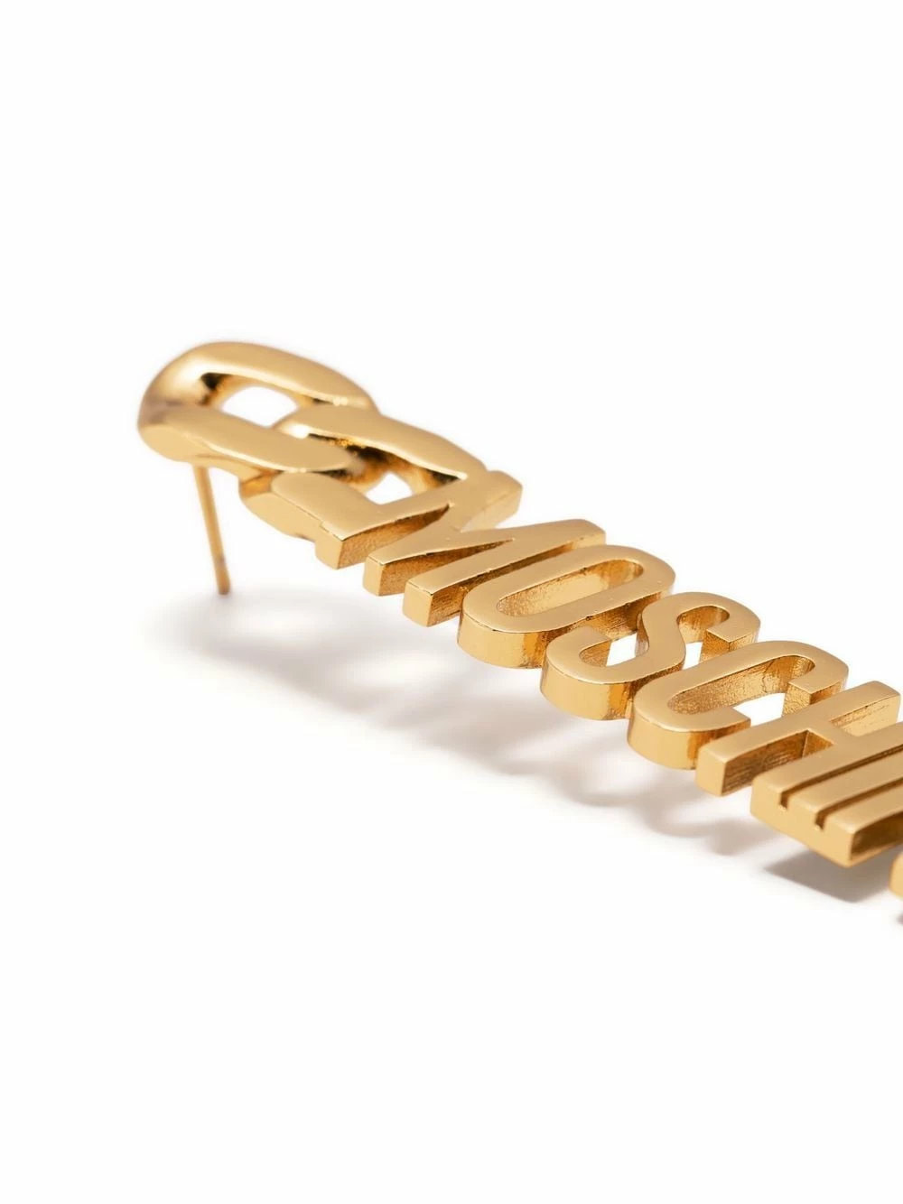 You love Moschino, and this logo-lettering earring loves you. In a shiny gold-tone hue, this piece will finish your look with sophistication. Shine bright.ย