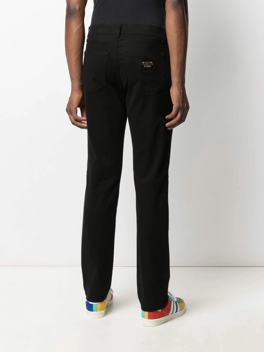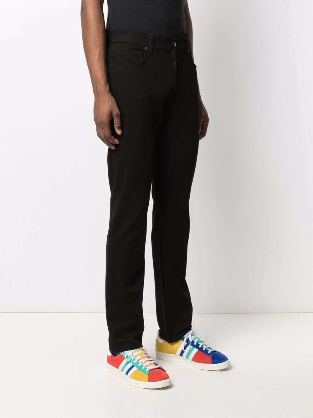 Black slim-fit jeans with a Moschino finishing touch. Crafted from stretch denim, the pair is adorned with gold-tone logo lettering at the rear pocket that nods to the House’s penchant for logomania.