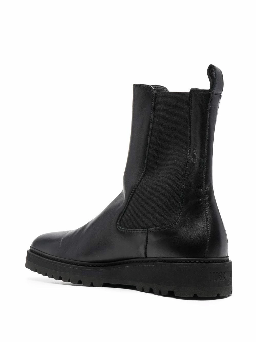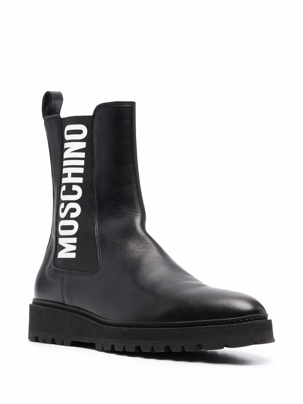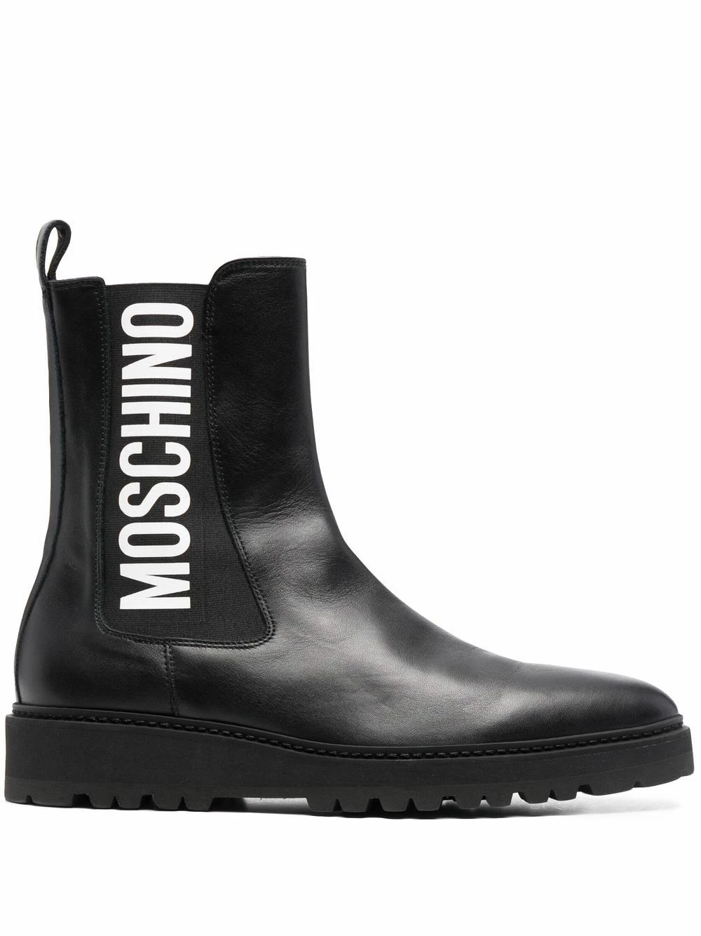 True to their essence, Moschino breaks the rules in style by adding a bold logo-print to these otherwise classic Chelsea boots. The result is a pair that is eye-catching in its contradictions.