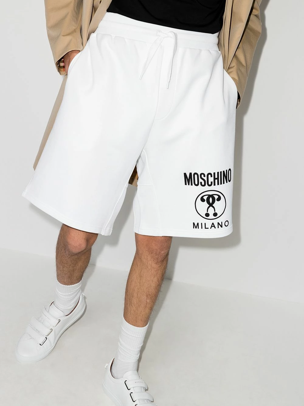 1001 WHITE Natural (Veg)->Cotton logo track shorts from Moschino.