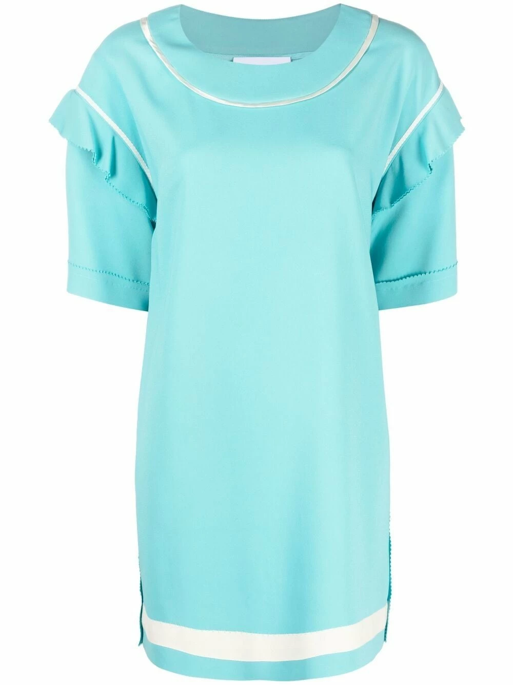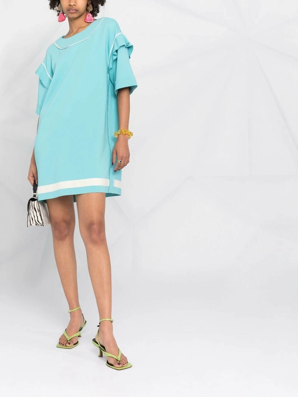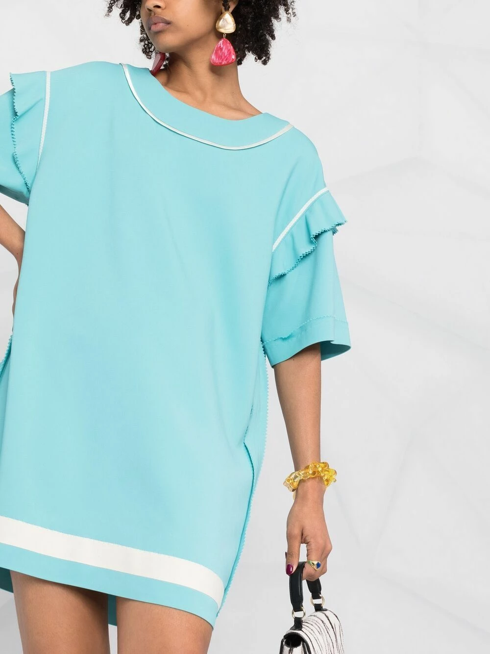 Monday is nothing a nice outfit can’t fix. Finished with ruffled and stripe detailing, this T-shirt dress from Moschino is the only kind of blues you need in your life. Guess who’s leaving the house in a great mood and an even better look…