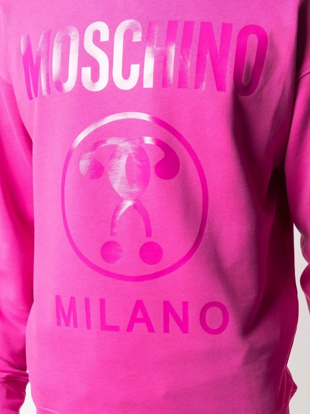 Moschino’s sweatshirt highlights the brand as an enduring champion of logomania – as well as its penchant for playful creations. This vibrant crew-neck style is accented with the House’s signature in glossy tonal letters as well as the Double Question Mark motif.