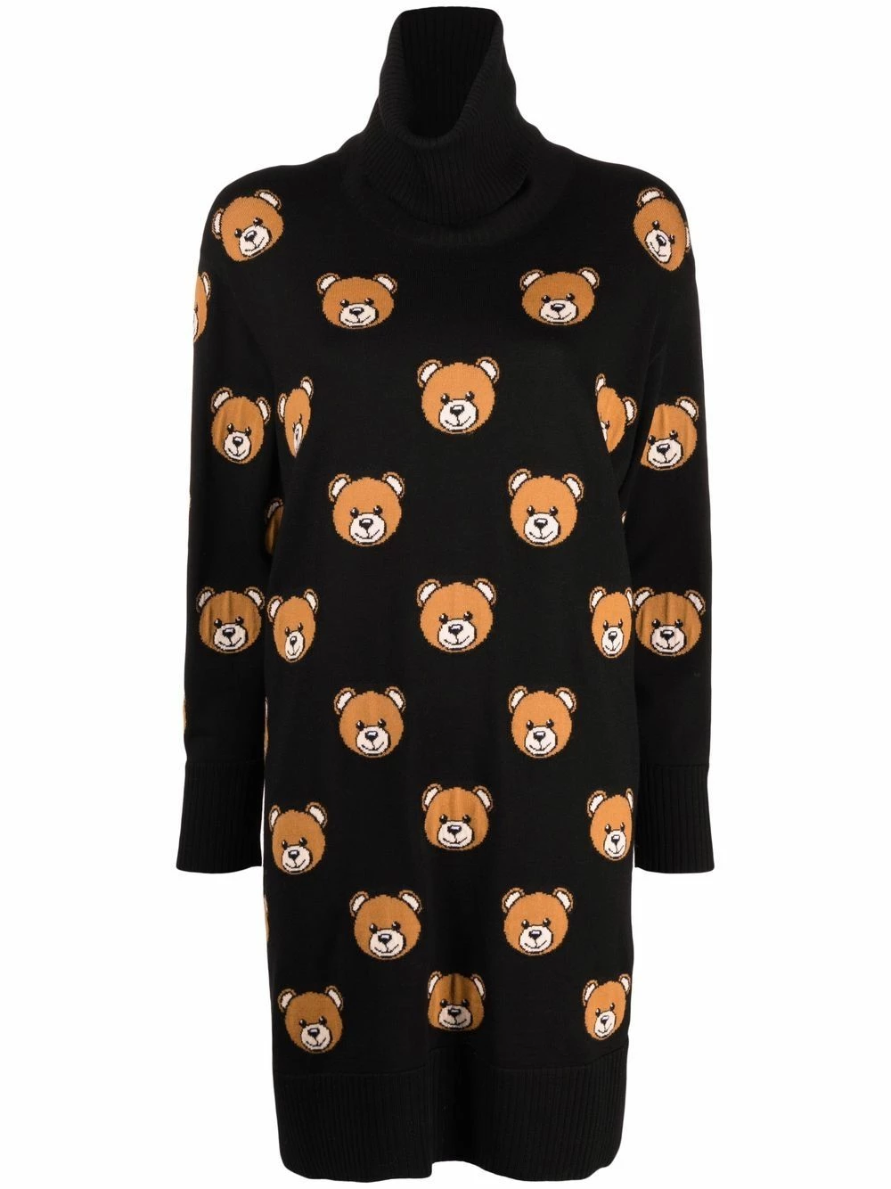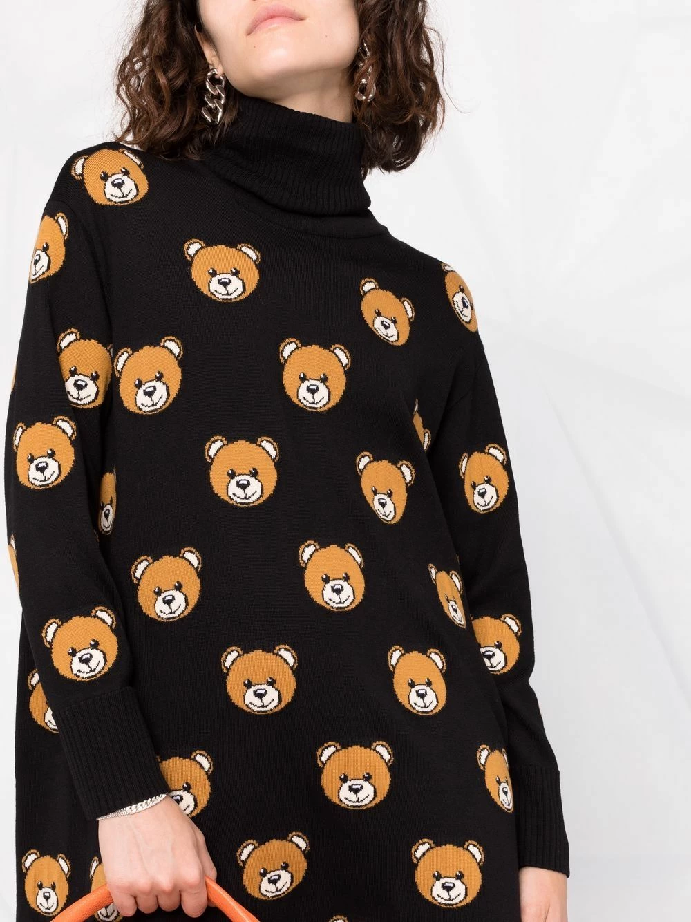 A mainstay for the brand, Moschino’s Teddy motif appears on a multitude of items season after season and this time, it is a black dress that has the honour. Soft and sweet, this virgin-wool design continues Moschino’s playful aesthetic.