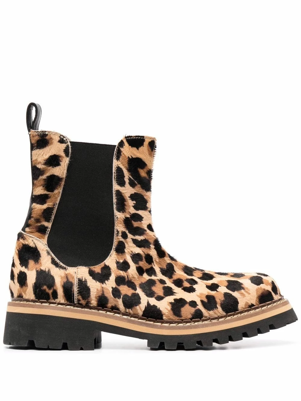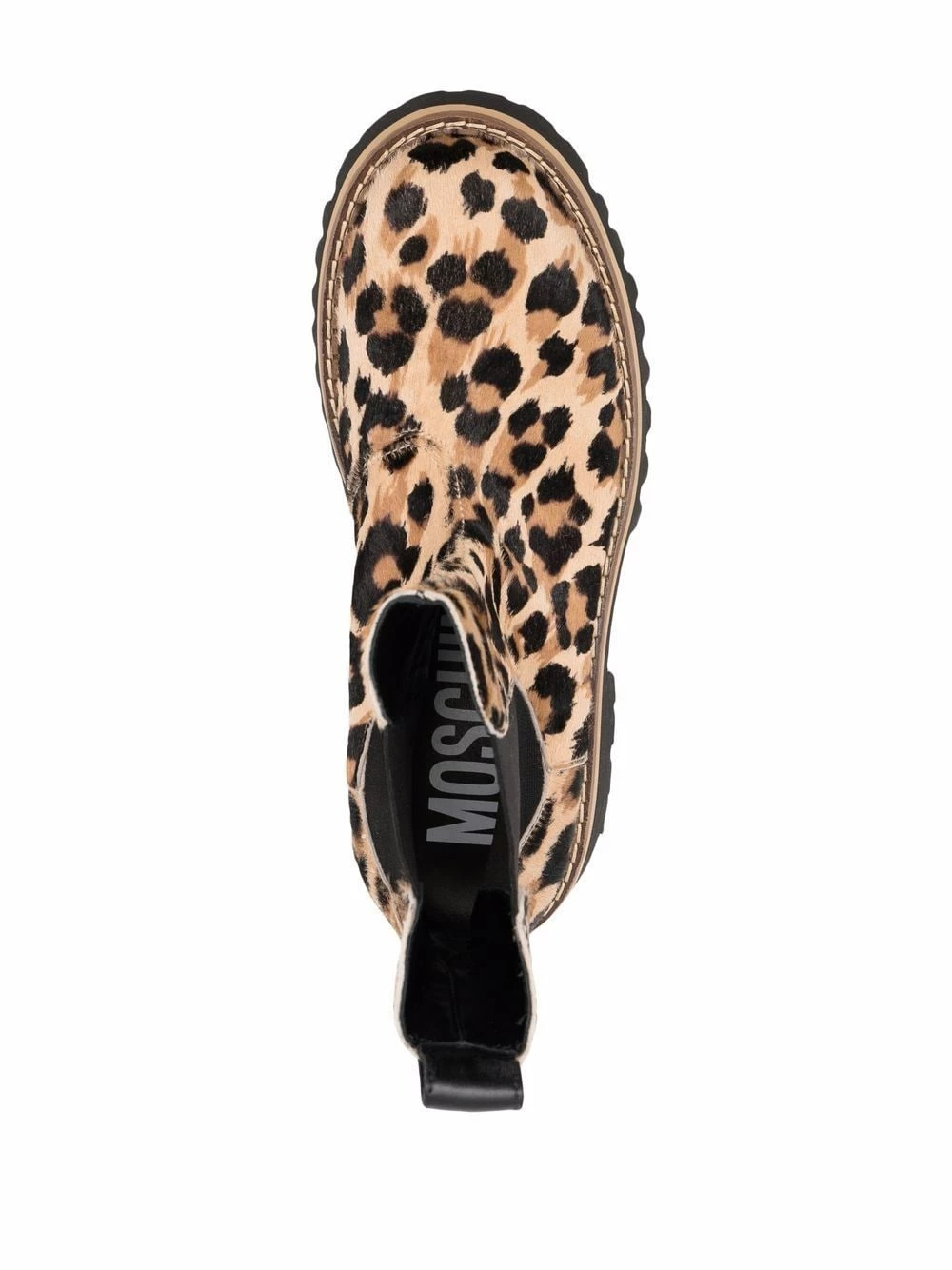 In a stand-out leopard print, these boots are Moschino’s take on the classic Chelsea boot silhouette. Sitting on a ridged rubber sole, this eye-catching pair is a prime example of the brand’s bold aesthetic.