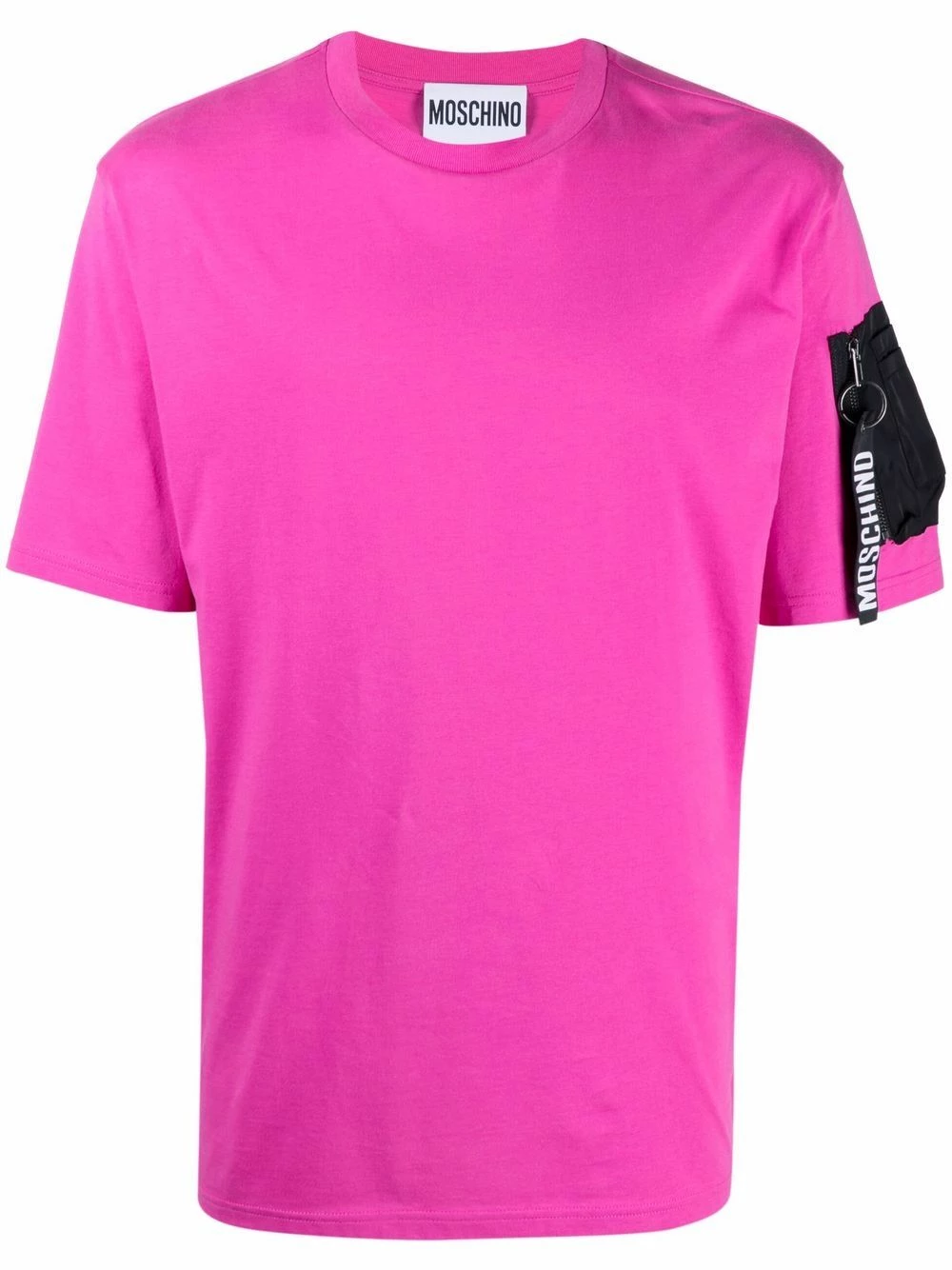 Show off your love for logos. You’ll be in your element, with the additional ones on this Moschino T-shirt design, such as the logo-keyring at the sleeve. It’s all in the details.