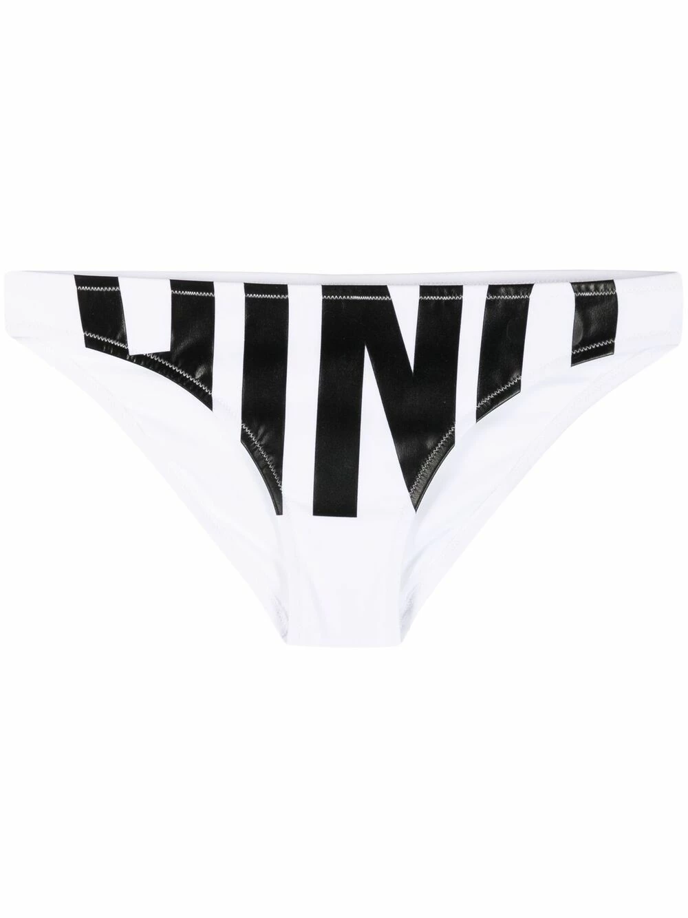 Beach days call for your best bikini. Emblazoned with logo lettering, these white and black bikini bottoms from Moschino will ensure a bold seaside look. Screens off, SPF on.