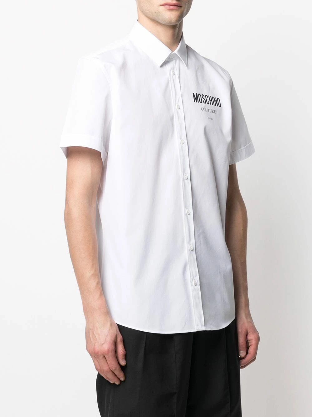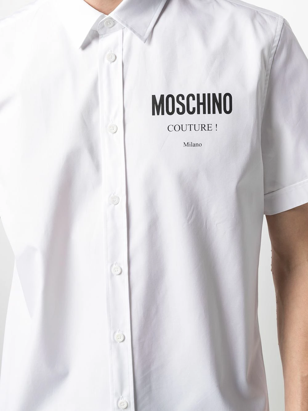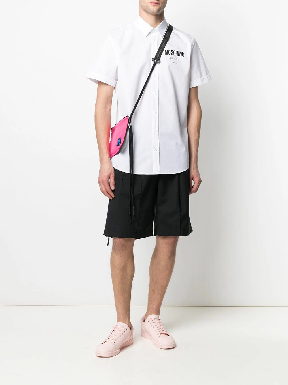 Your smartwear wardrobe is about to excel with a streetwear edge. This Moschino design will take centrestage of any meeting, with a logo print at the chest. Button up.