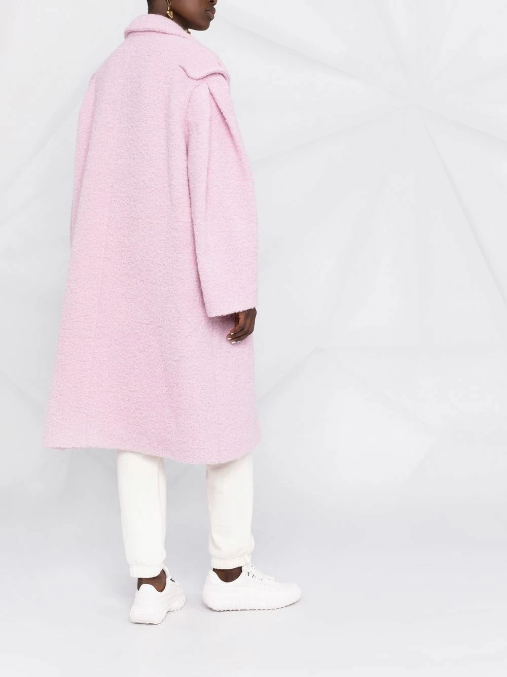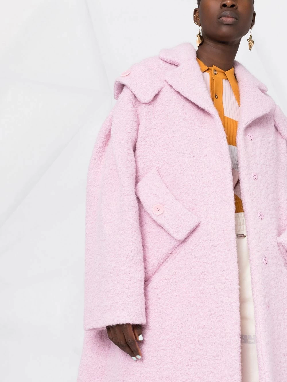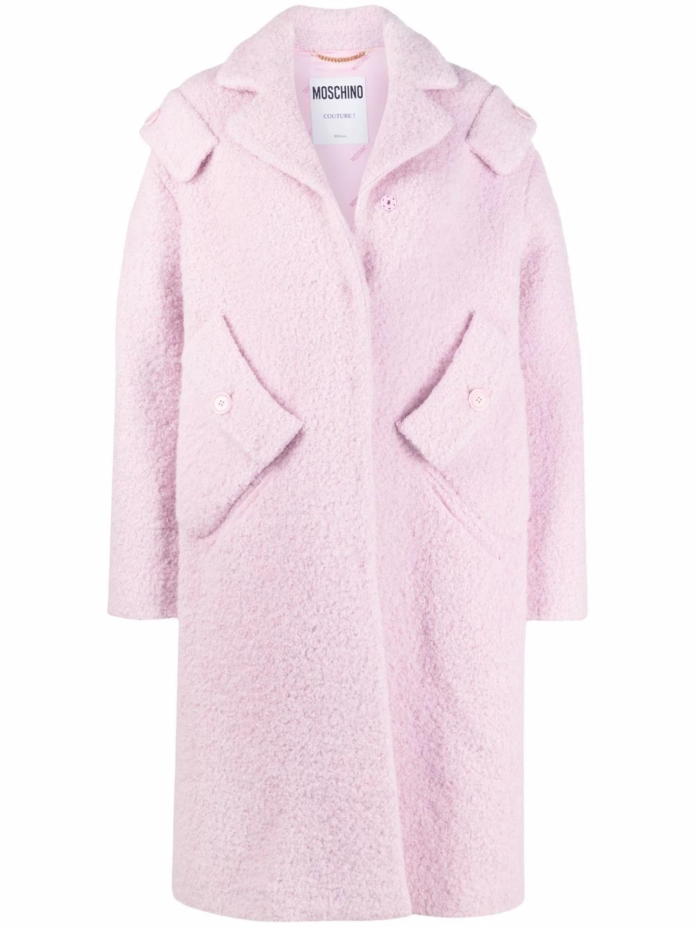 Moschino’s AW21 take on outerwear comes in the shape of this light pink single-breasted coat. Crafted from a virgin wool and alpaca blend with a bouclé construction, the piece is detailed with multiple pockets.