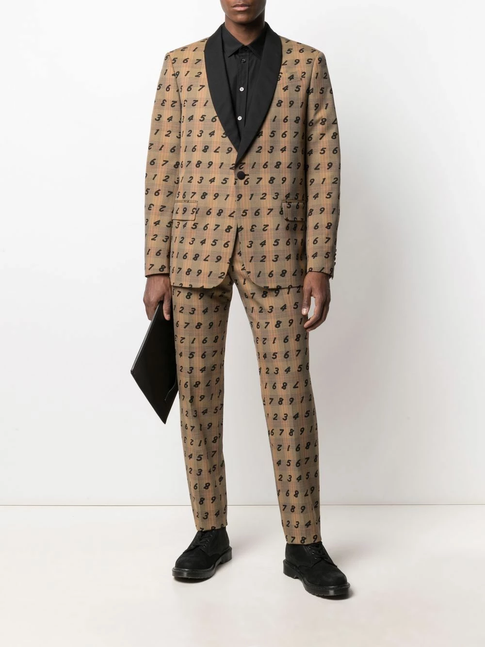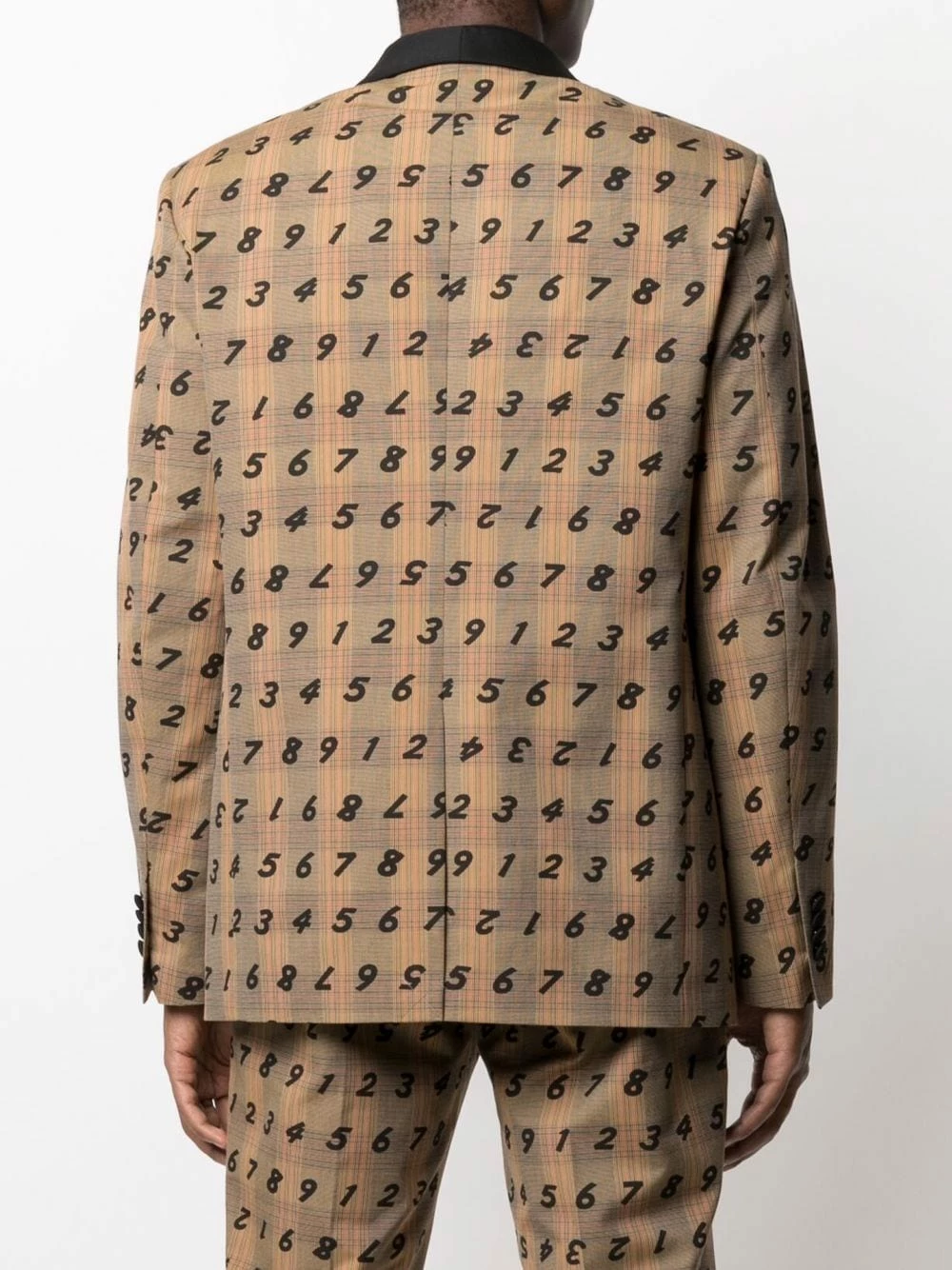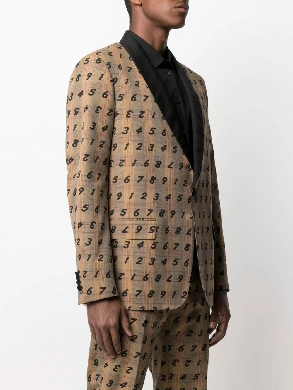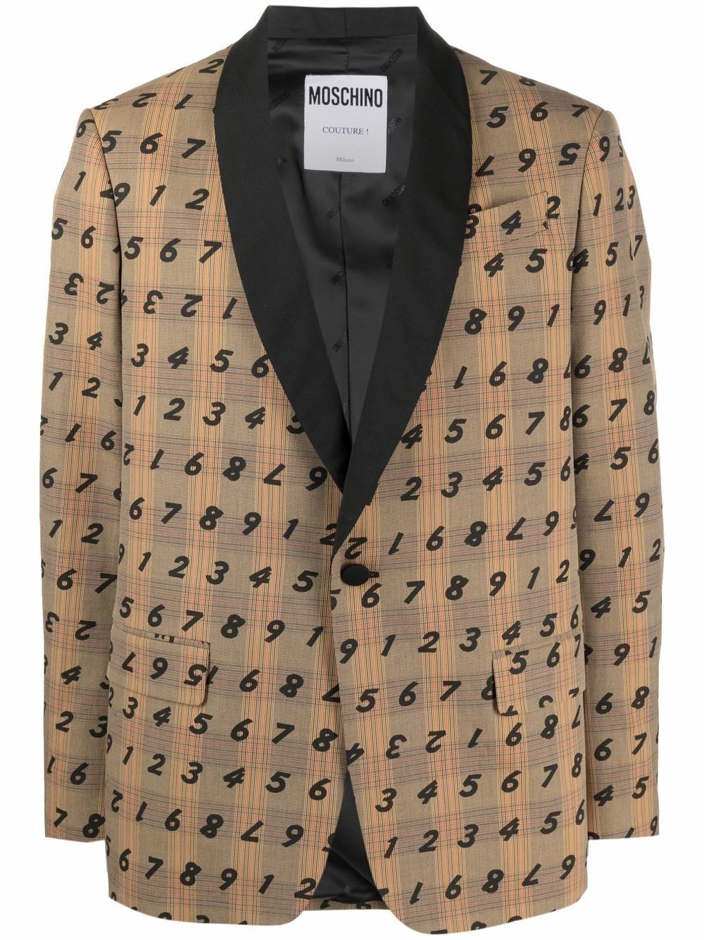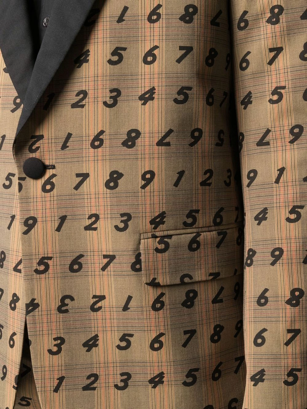 Treat your tailoring to a distinctive Moschino makeover. Designed in Italy, this Prince of Wales check single-breasted blazer is patterned with an all-over numerical print design. What’s your lucky number?
