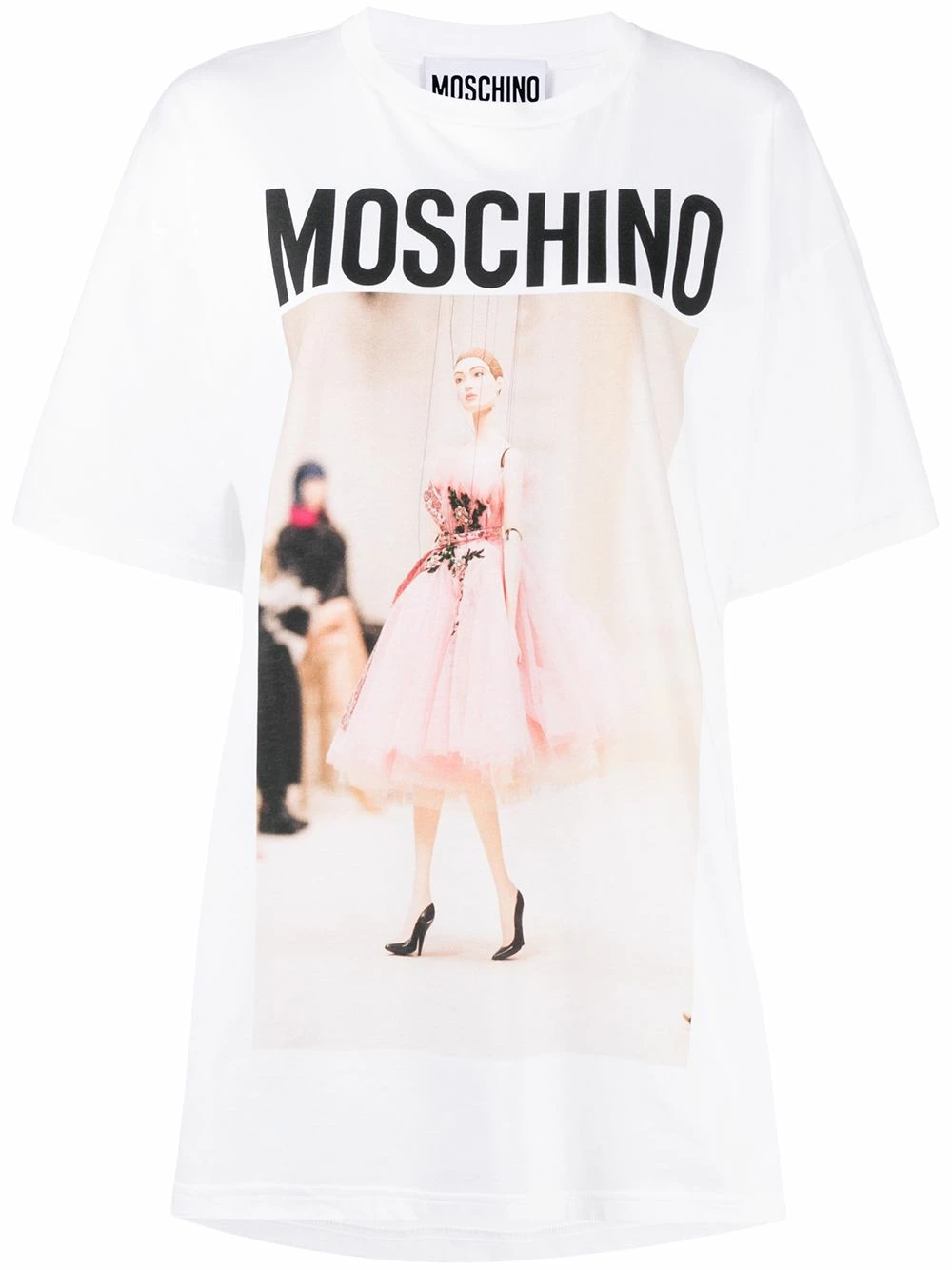 Not-so-basic, basics. Say goodbye to your plain white tee (or just put it in the wash) and say hello to this oversized T-shirt by Moschino, boasting the fashion house’s logo to the front along with a photographic print. Snap it up quick.