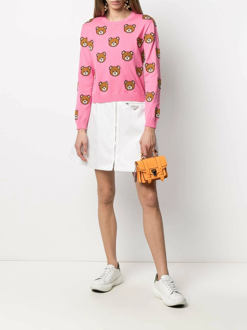 Moschino’s iconic Teddy is the star of the show when it comes to this Teddy bear intarsia jumper. Made from cotton, this vibrant knit is perfect for those who like their casual pieces with a side of playfulness.