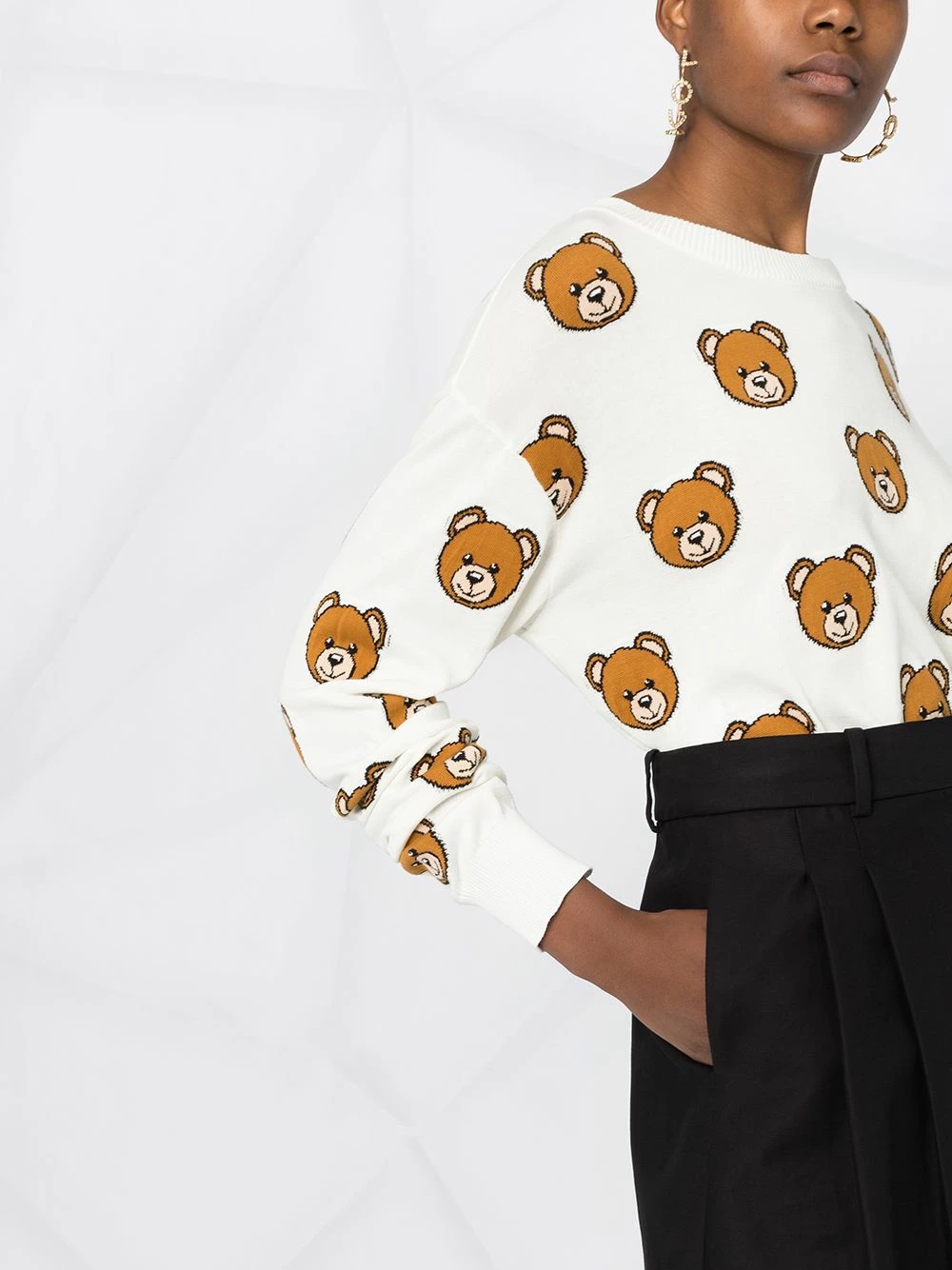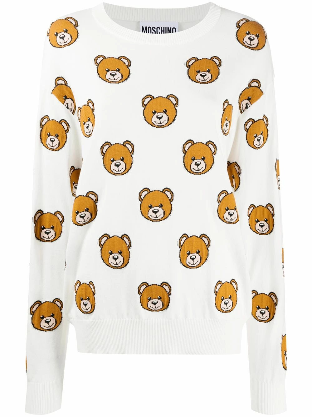 Cuteness overload. Just when you thought Moschino’s iconic Teddy couldn’t get any adorable, here he is, all-over this comfortable white jumper. Crafted from cotton, this piece is the perfect excuse for you to show off your cute side. Aww!