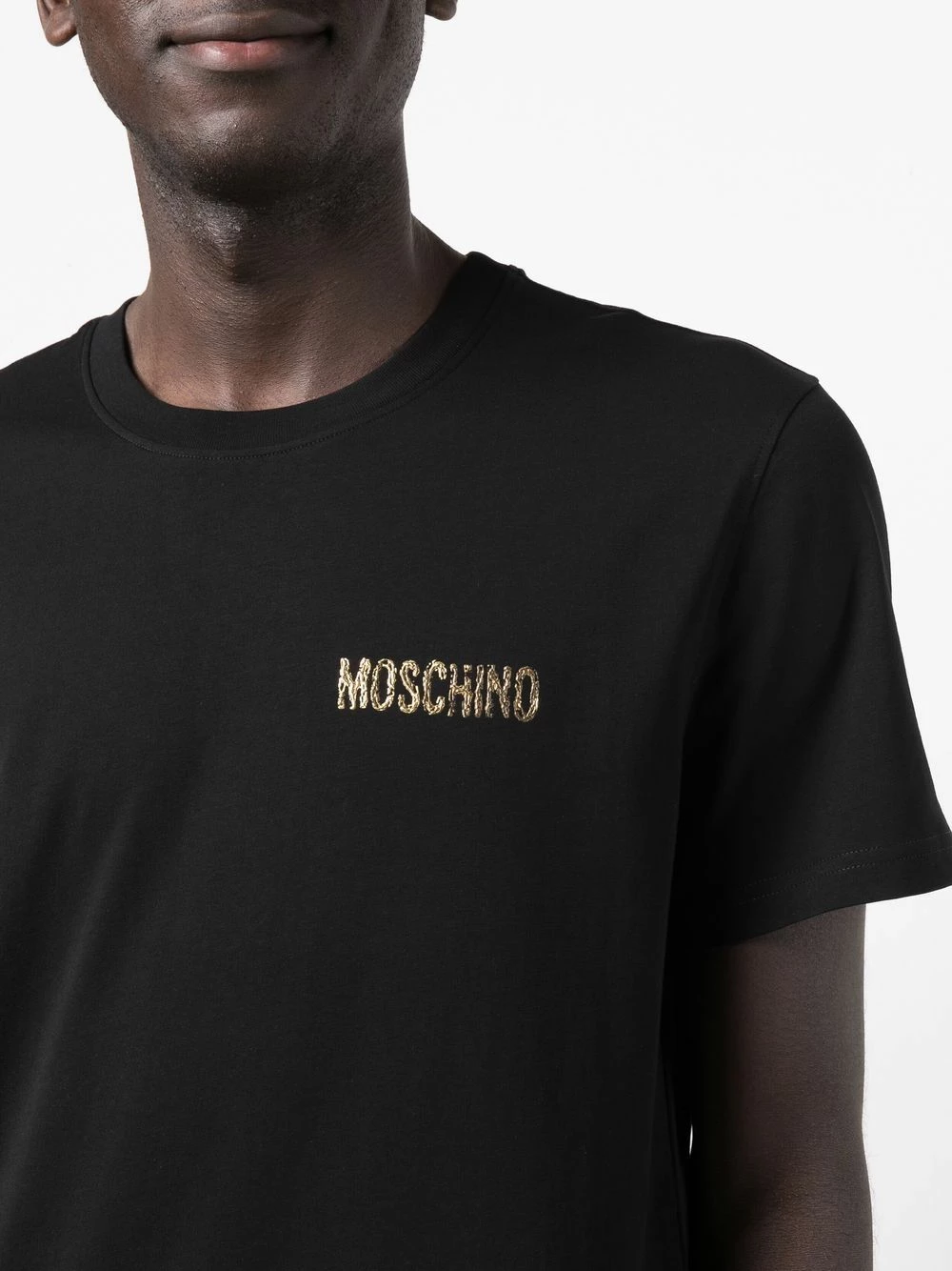 Adding a flamboyant twist to a classic design, Moschino delivers this T-shirt. Crafted from cotton, it is adorned with the House’s logo in a gold-tone hue that nods to the brand’s inclination for lavish detailing.