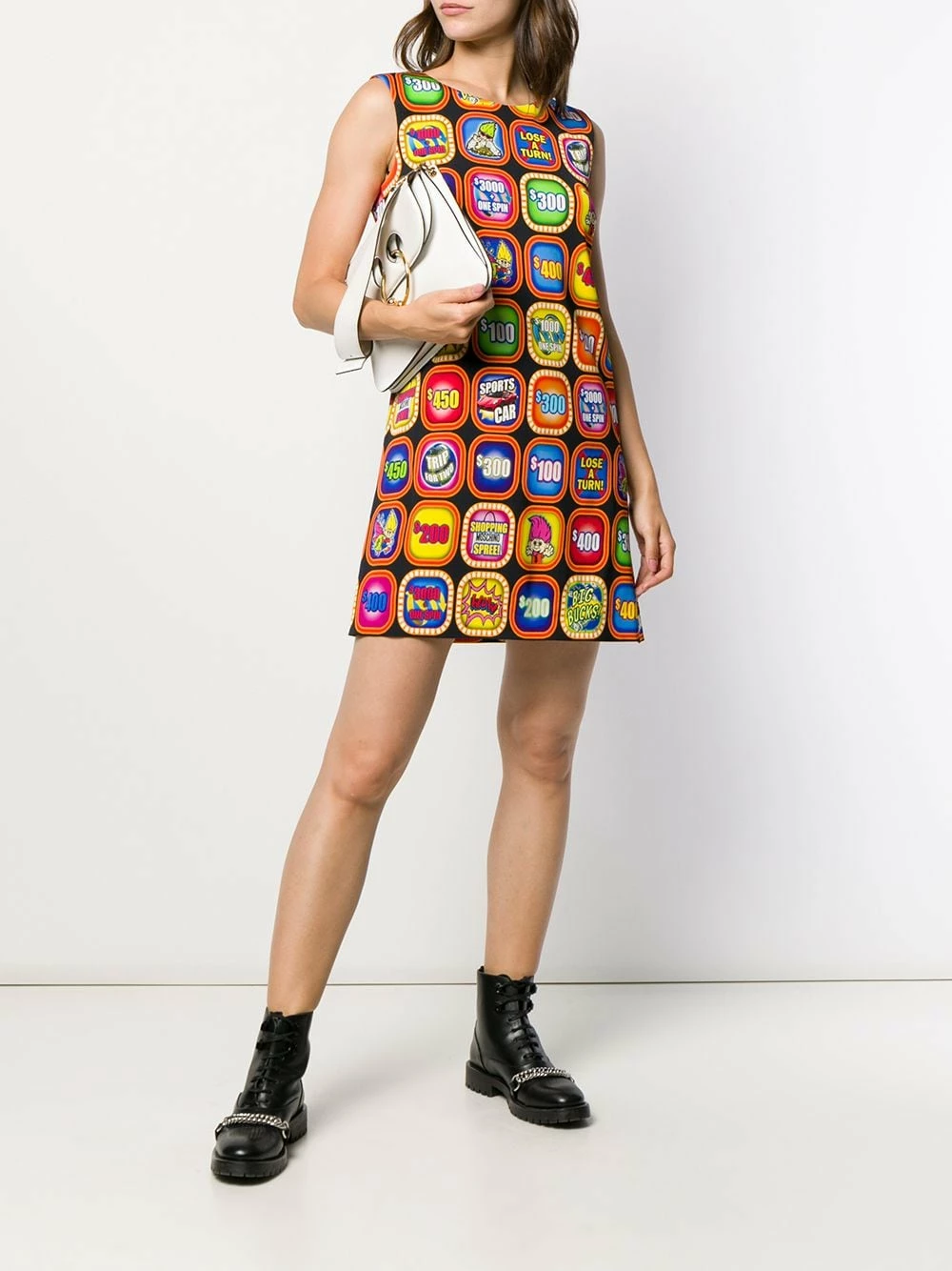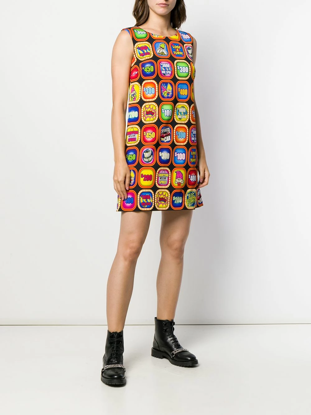The Moschino vision is defined by a youthful, tongue-in-cheek aesthetic, as showcased with this multicoloured virgin wool blend fruit machine print dress. Featuring a round neck and a sleeveless design.