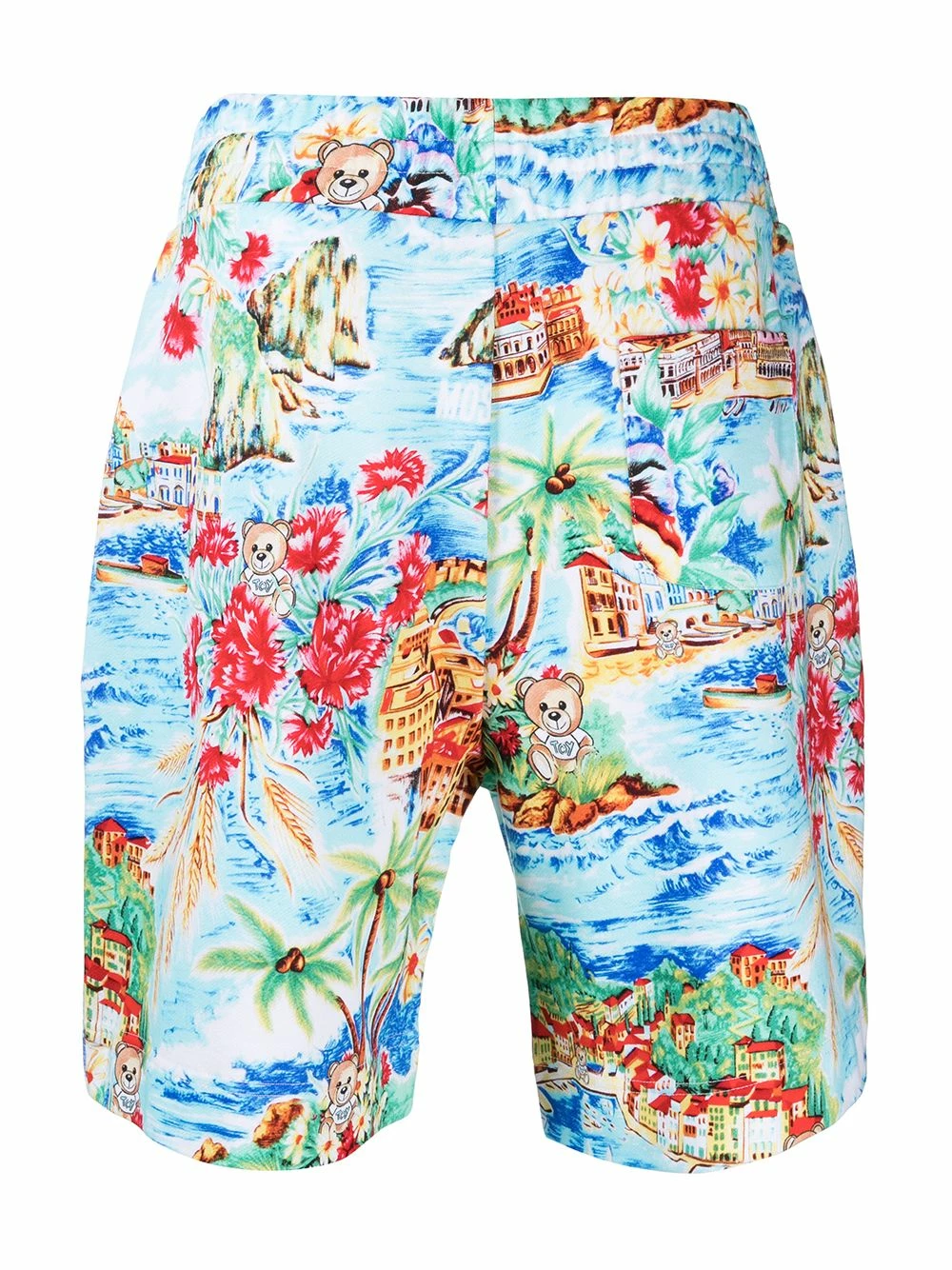 Colour your summer outfits with these swimming shorts from Moschino. Boasting a suggestive all-over graphic print, this piece will make sure you stand out everywhere you go. The teddy bear print is there for some extra style. Thank us later!
