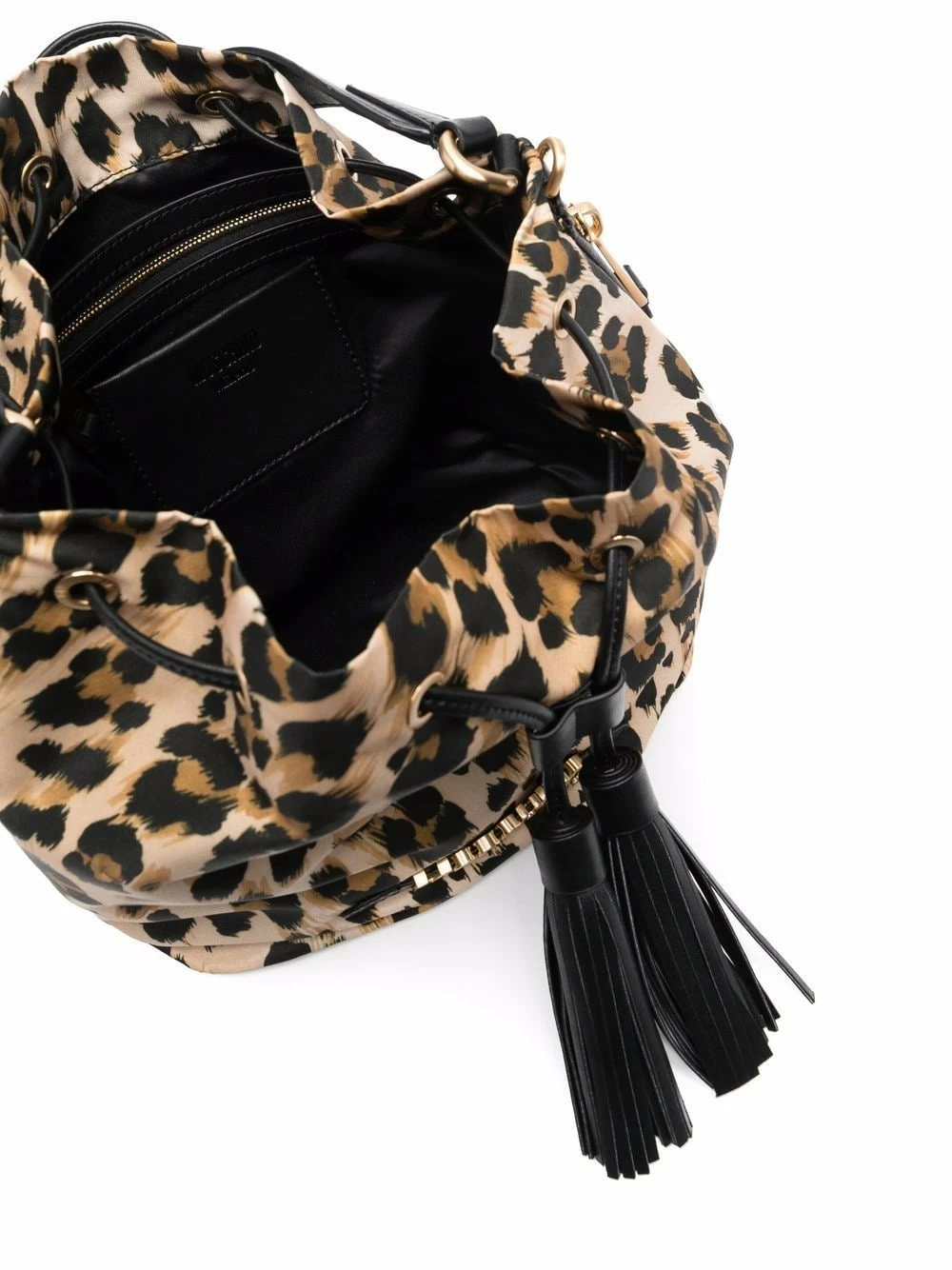 Go wild for your next accessory update. Moschino makes an impact with this leopard print and gold-tone logo plaque design. You’ve got it in the bag.