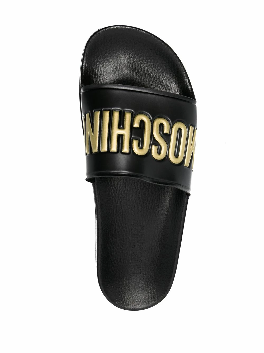There’s never a dull moment with Moschino. Making sure your wardrobe is bursting with playful energy, the Italian fashion house has designed these logo letter sliders to add attitude to your casual look.ย
