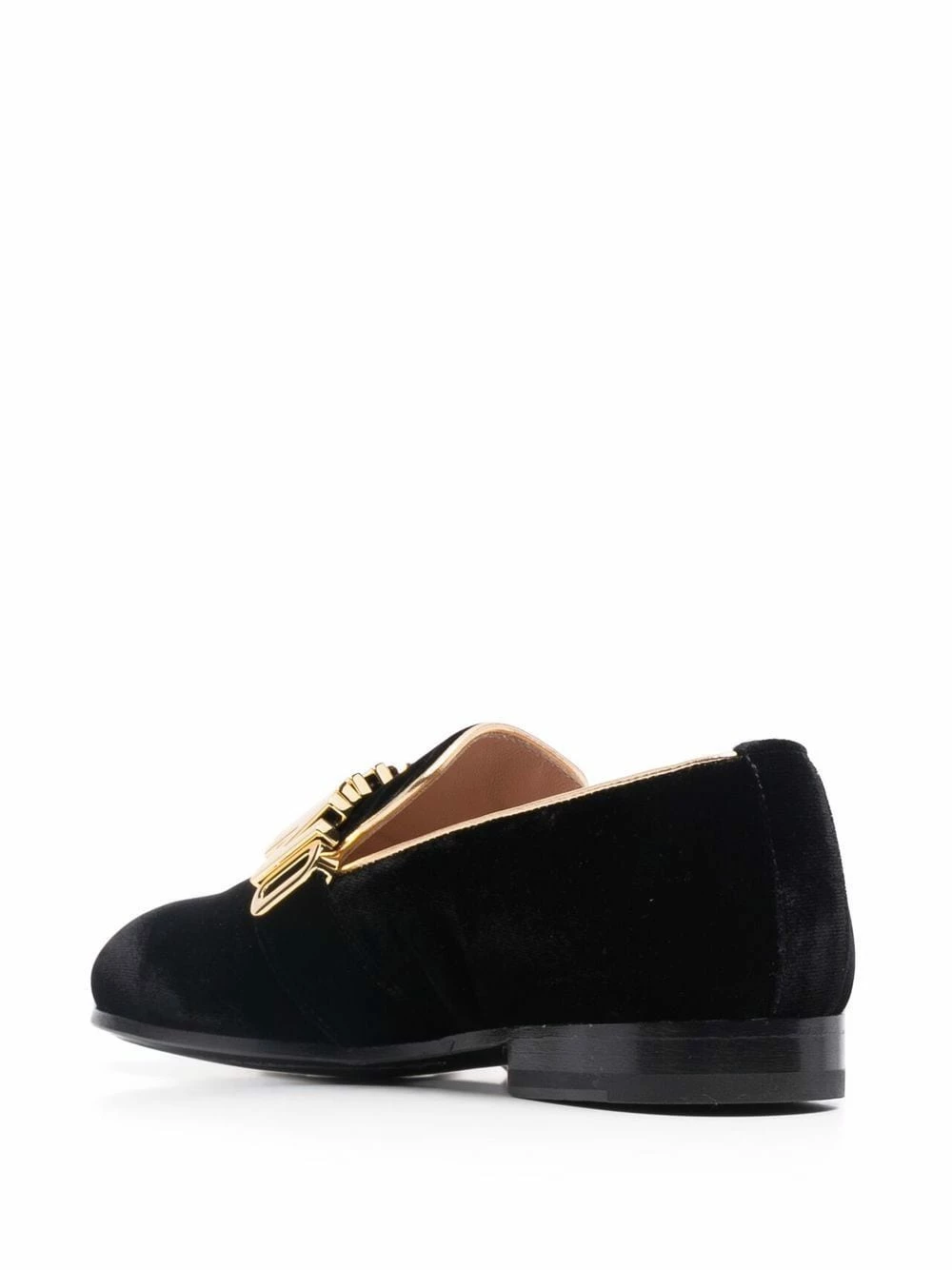 Moschino’s classic sense of fun is met with an opulent edge on this pair of loafers. Featuring logo lettering in gold-tone hardware at the front of the design, a signaturely eye-catching piece is created.