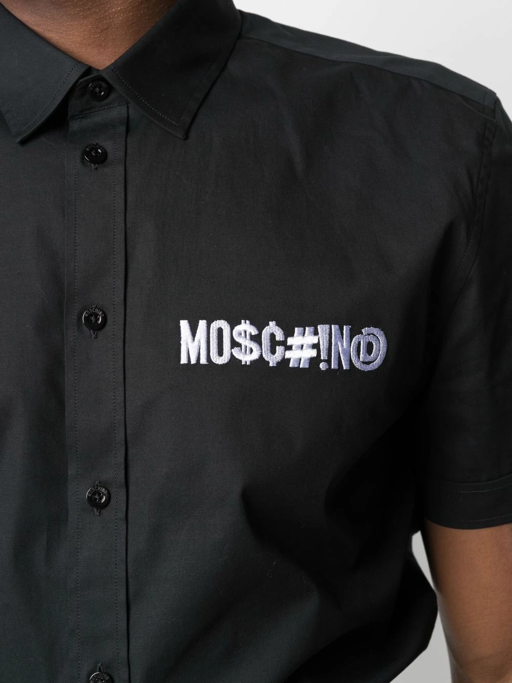 There are shirts and then there are Moschino shirts. Crafted in Italy from crisp stretch-cotton poplin, this short-sleeved design features a Symbols embroidered logo at the chest in a contrasting white hue. Don’t mind if we do.
