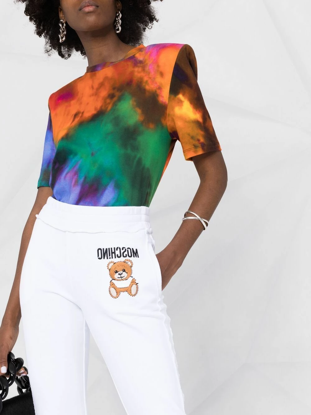 You’re never too old to showcase your playful side. These white track pants from Moschino are the proof, embroidered with the signature teddy bear motif. Comfort with a tongue-in-cheek edge.