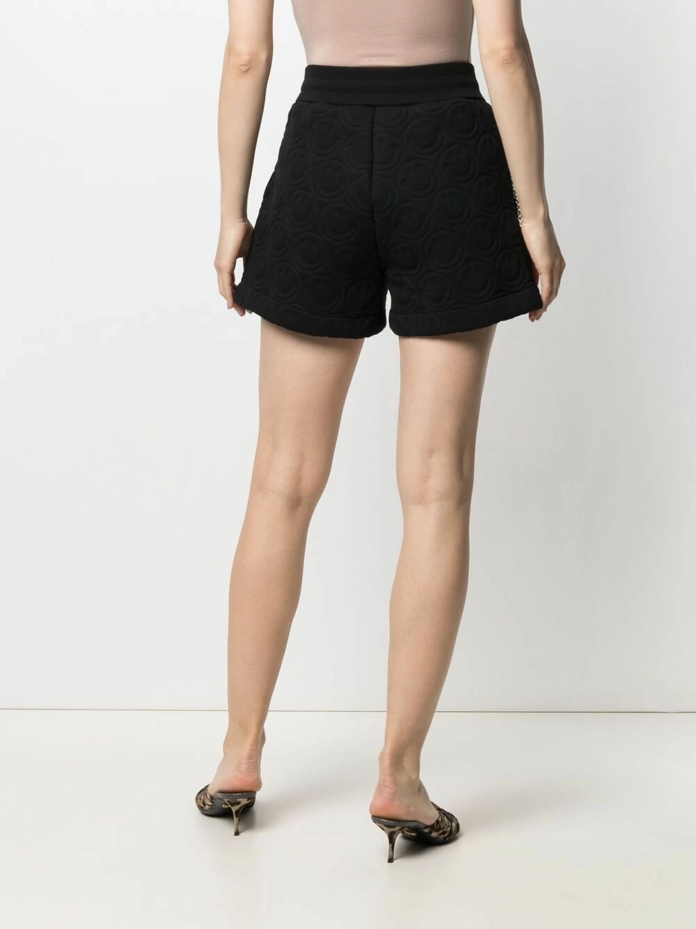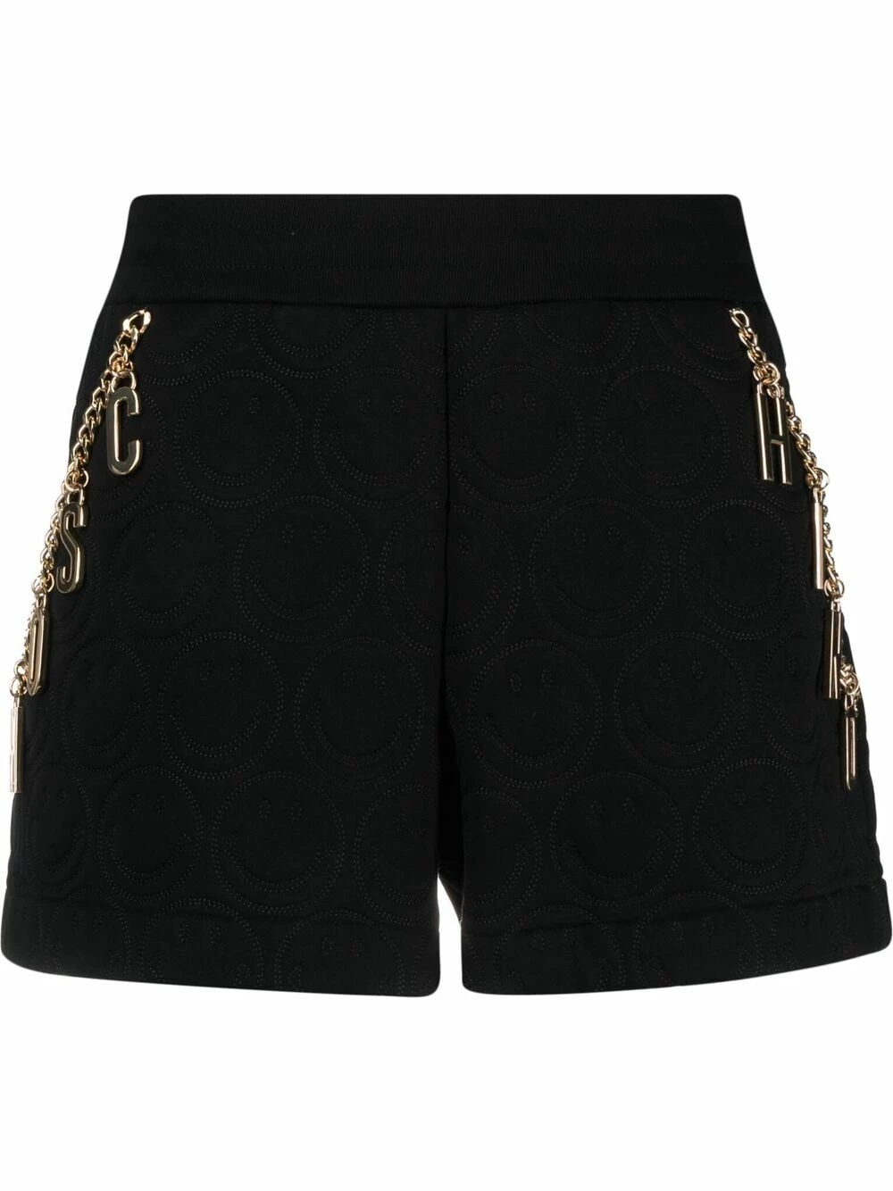 Time to smile. Crafted from cotton fleece, these shorts boast Moschino’s gold-tone lettering and quilted-effect Smileyยฉ embroidery that will surely lighten everyone’s mood. A cheerful design.