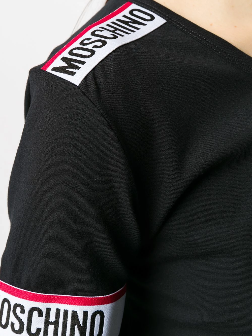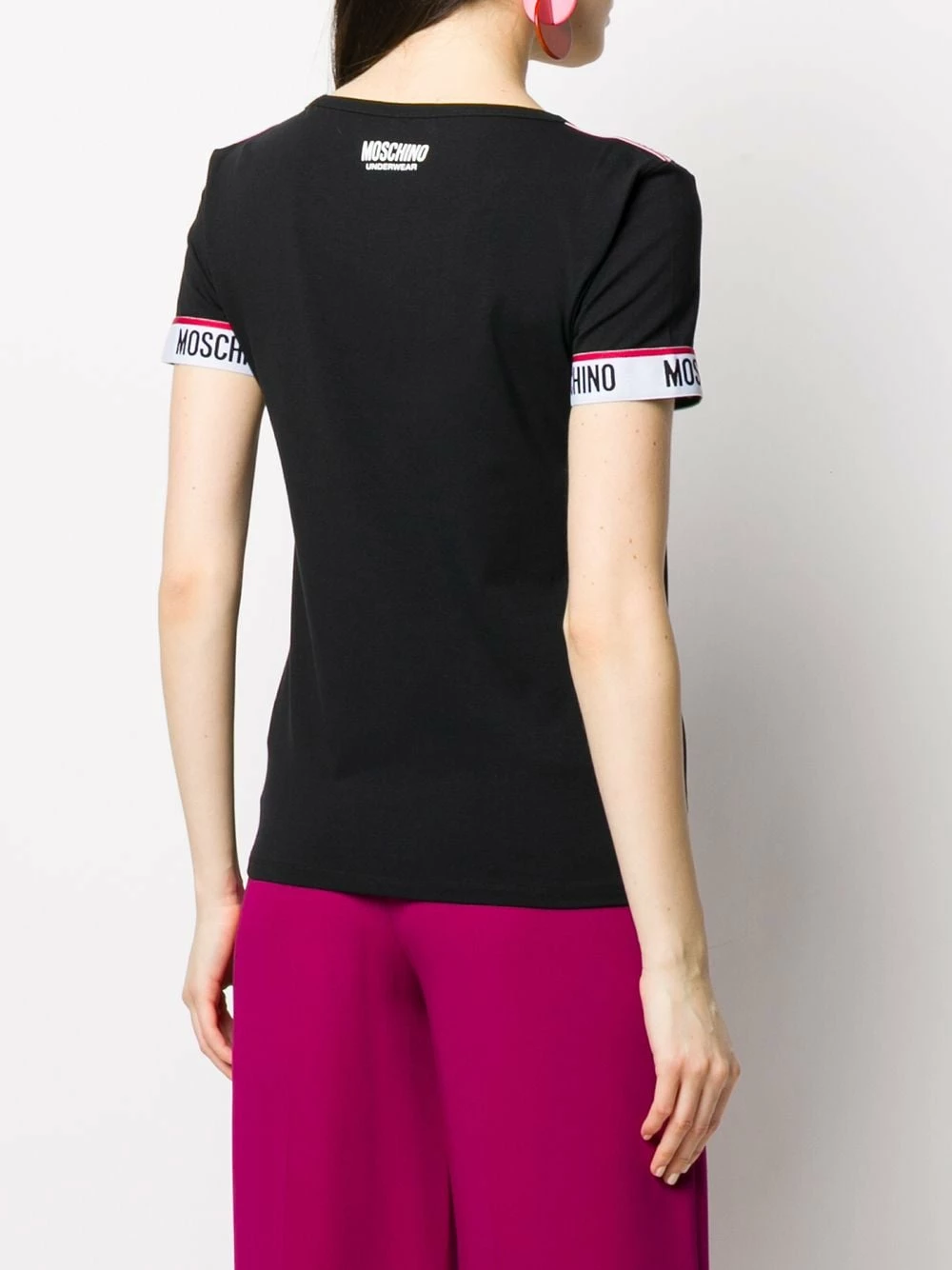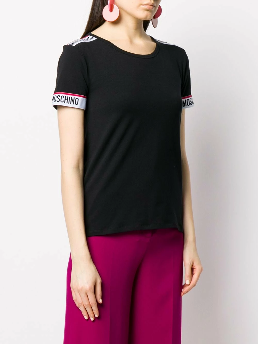 There’s no off-duty look without a cool branded T-shirt and there’s shouldn’t be a closet without one either. Crafted from soft cotton-blend, this branded tape T-shirt from Moschino will never let you down. Don’t get confused, it is Moschino baby! Featuring a round neck, short sleeves, a straight hem and branded tape details.