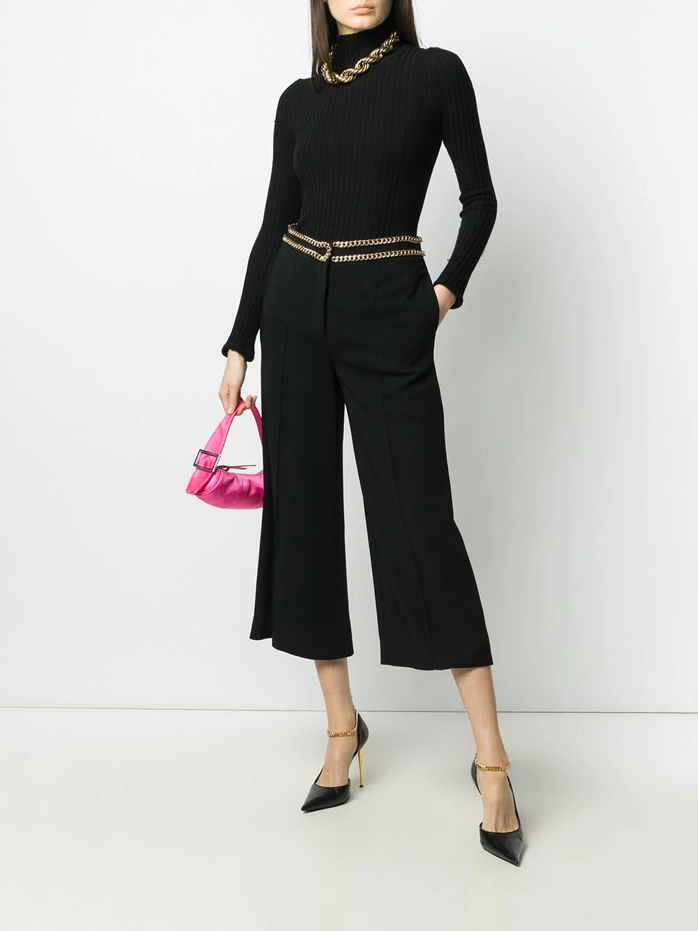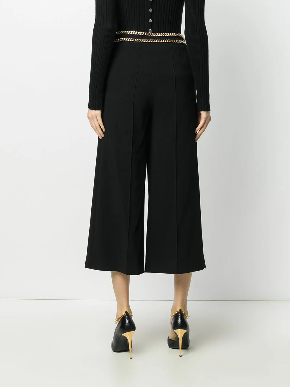 What is keeping you from being the best version of yourself? Could it be that your wardrobe is not rising to the challenge? With these chain-trimmed trousers from Moschino, that is about to change. A gold-tone chain trim adds a sophisticated finish to this cropped design, while the relaxed cut ensures all-day comfort. Reaching your full potential has never been easier.