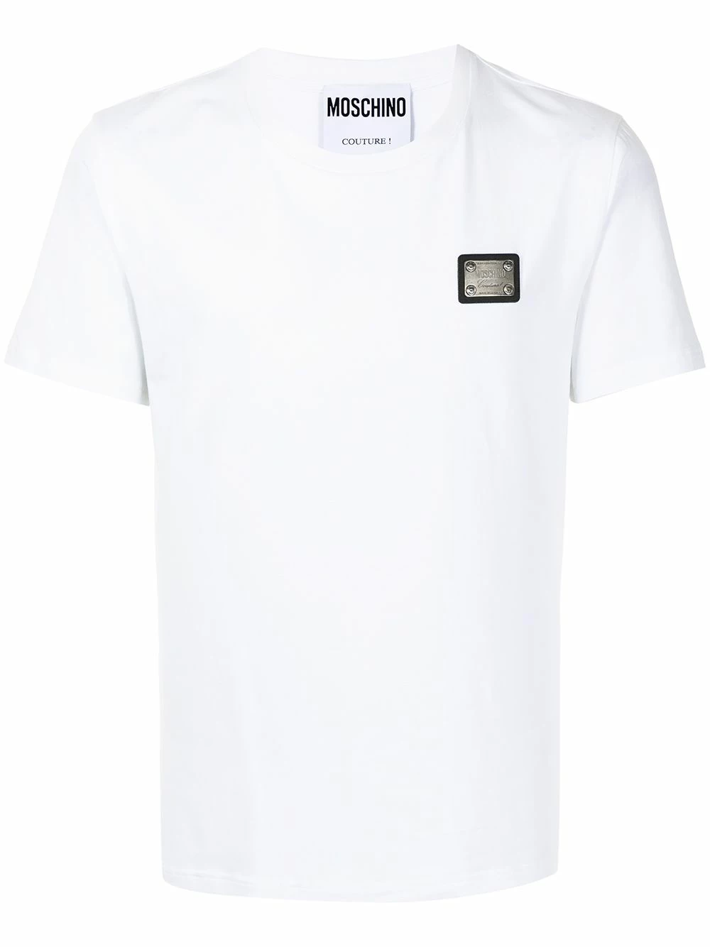 Loud and proud. Everyone will know where your loyalties lie when sporting this logo plaque emblazoned T-shirt from Moschino Couture. Consider it a badge of honour.