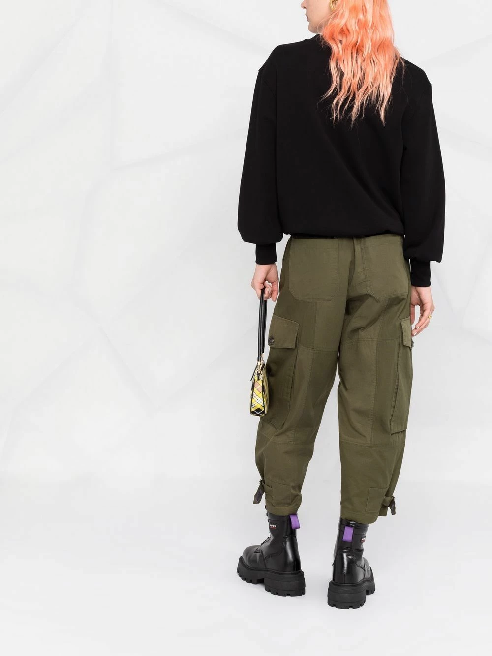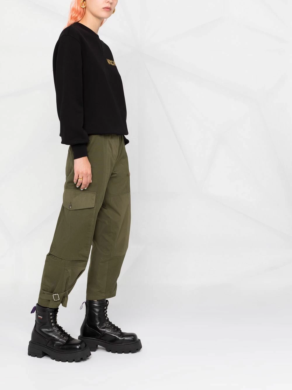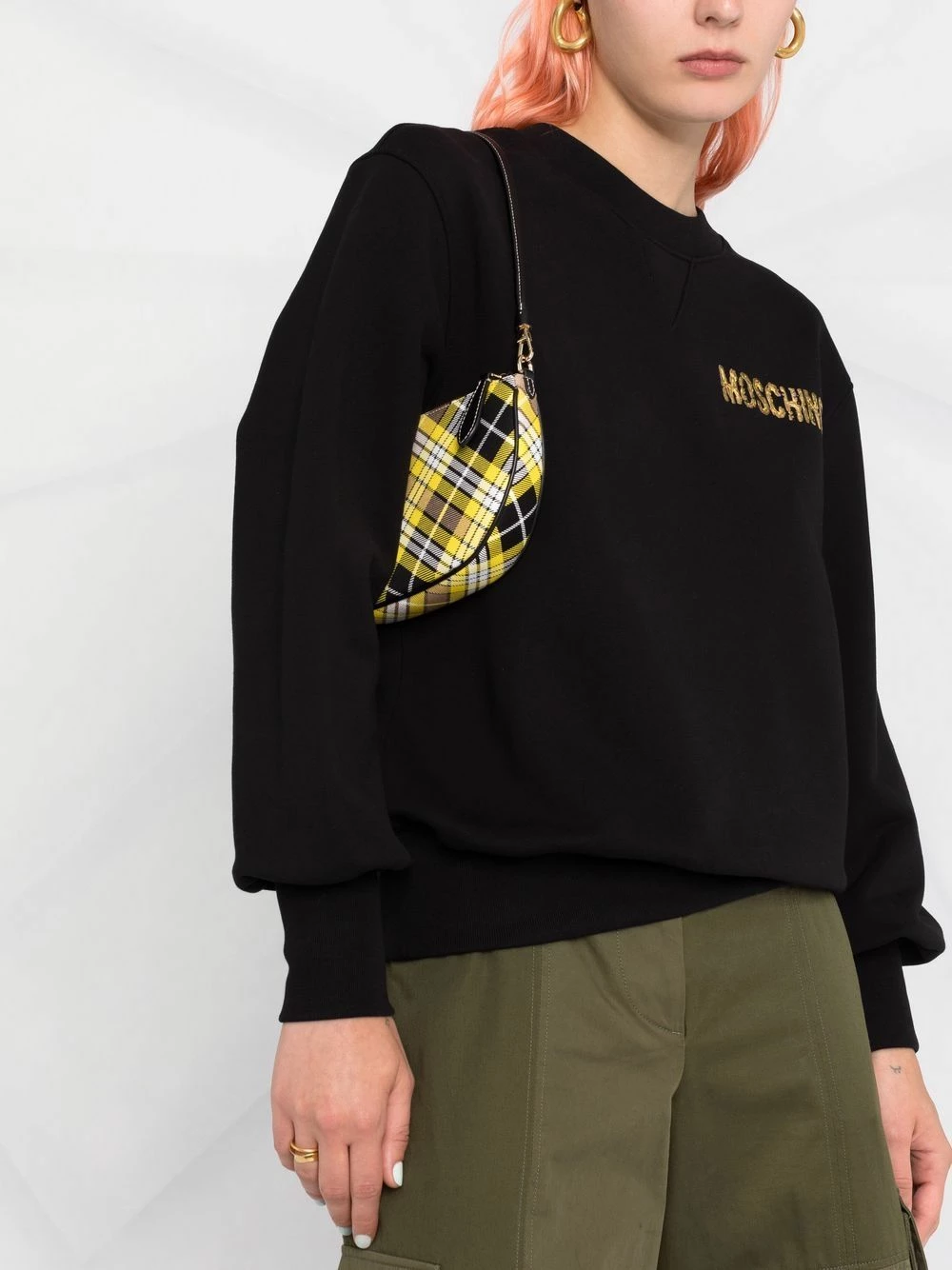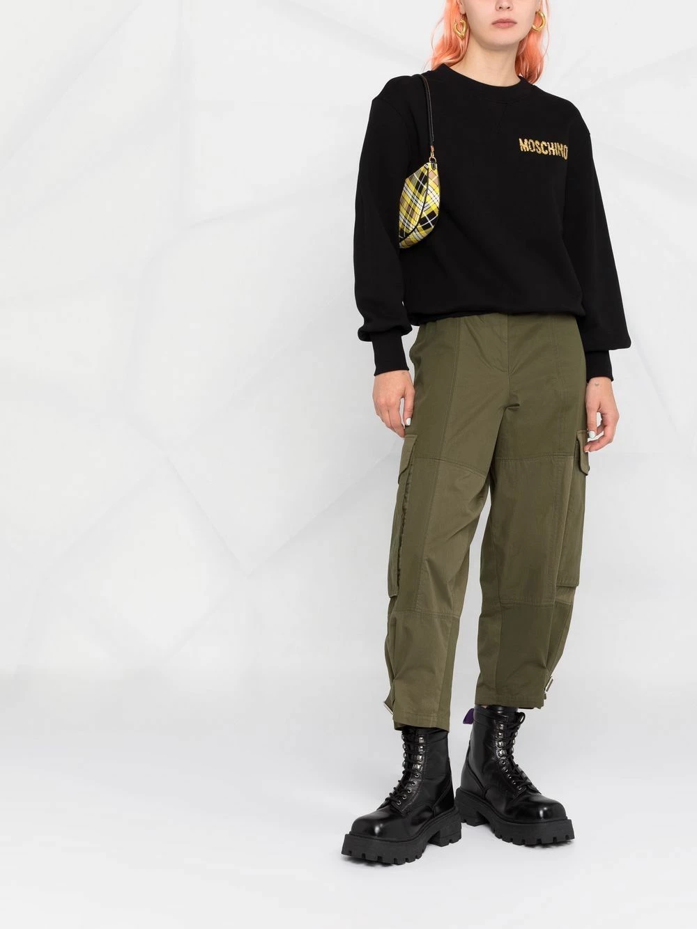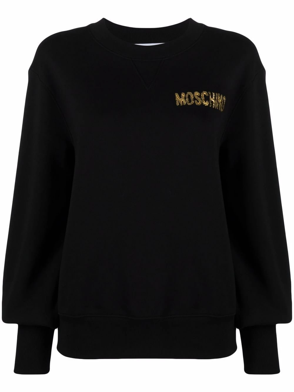 With stylish casual wear in mind, Moschino presents this crew-neck sweatshirt. Crafted from black cotton and detailed with puff sleeves, the piece is detailed with a gold-tone logo print at the chest.