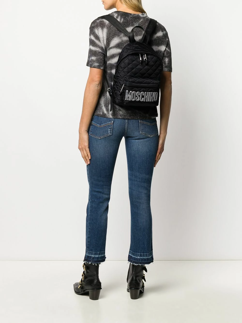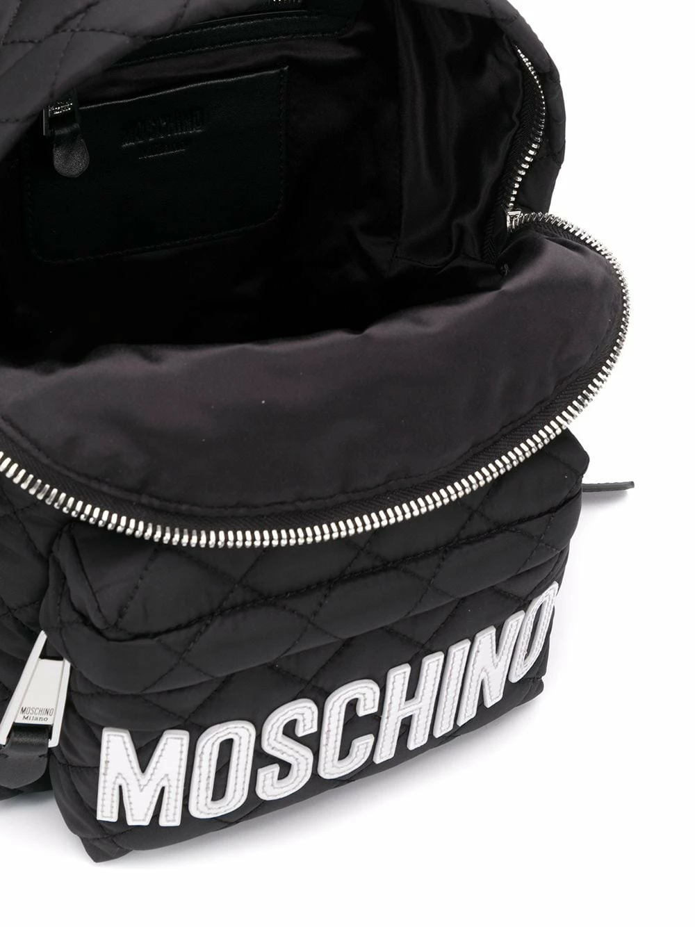 Simplicity is key, and this black logo quilted backpack from Moschino seems to agree. Punctuated by the contrasting logo lettering, this multi-compartment accessory masters the art of subtle sporty styling.