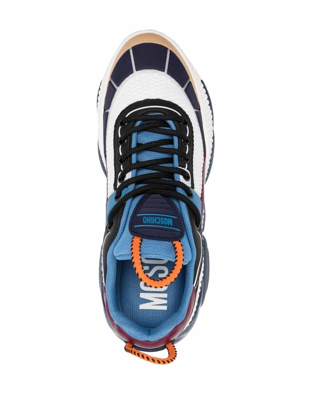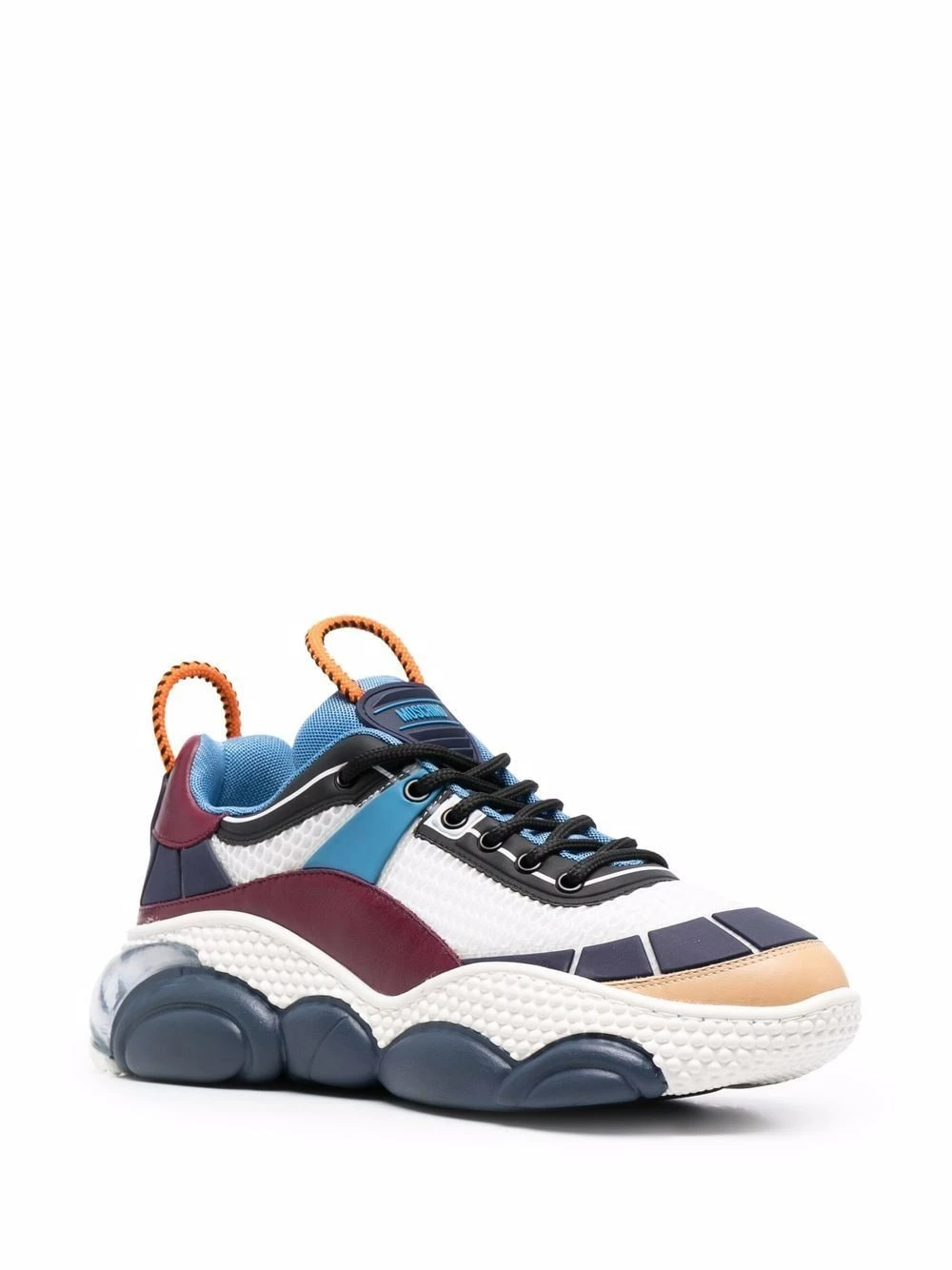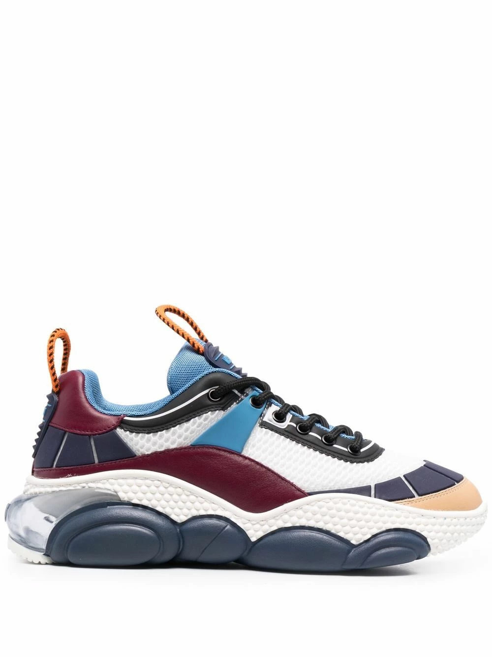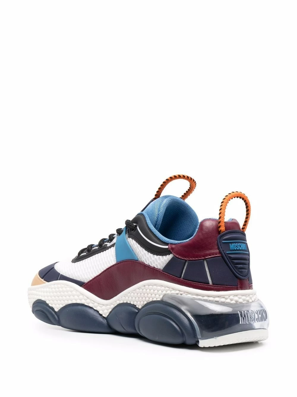 From 1988, the Teddy Bear has been an iconic Moschino motif. It makes up the rubber sole of these colour-block sneakers, adding an unexpected touch to an already eye-catching pair.