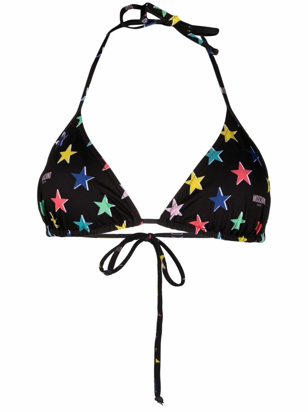 Created by Franco Moschino, the Italian fashion House burst onto the scene in 1983 with colourful designs and eccentric spectacles. Over 30 years later, creative director, Jeremy Scott, maintains this deep-rooted playfulness – as seen by the multicolour-hued star print adorning this bikini top.