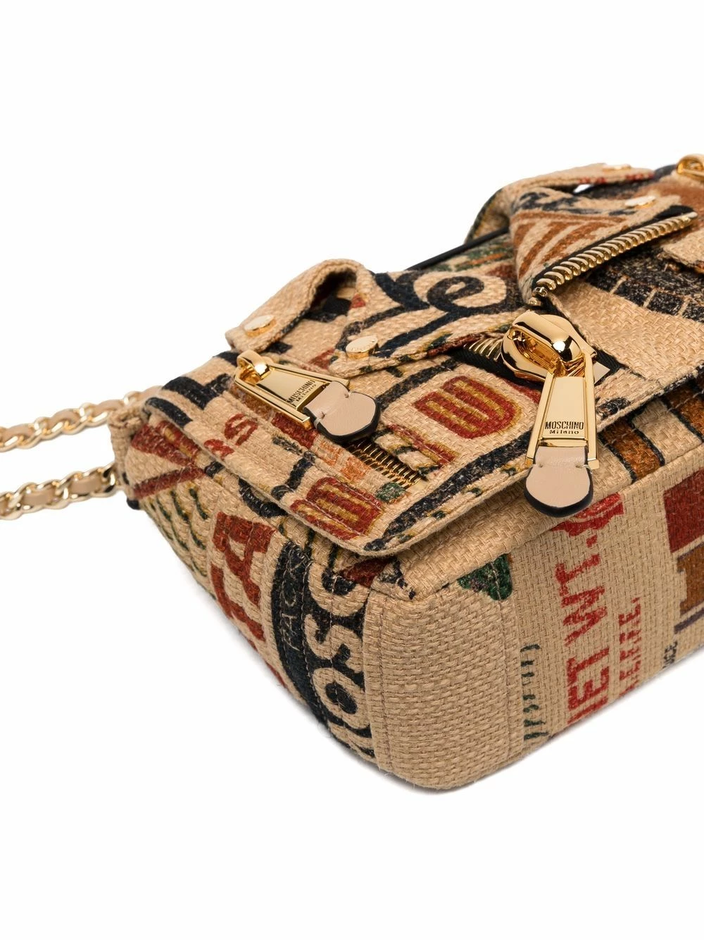 - faux-leather and chain-link shoulder strap
