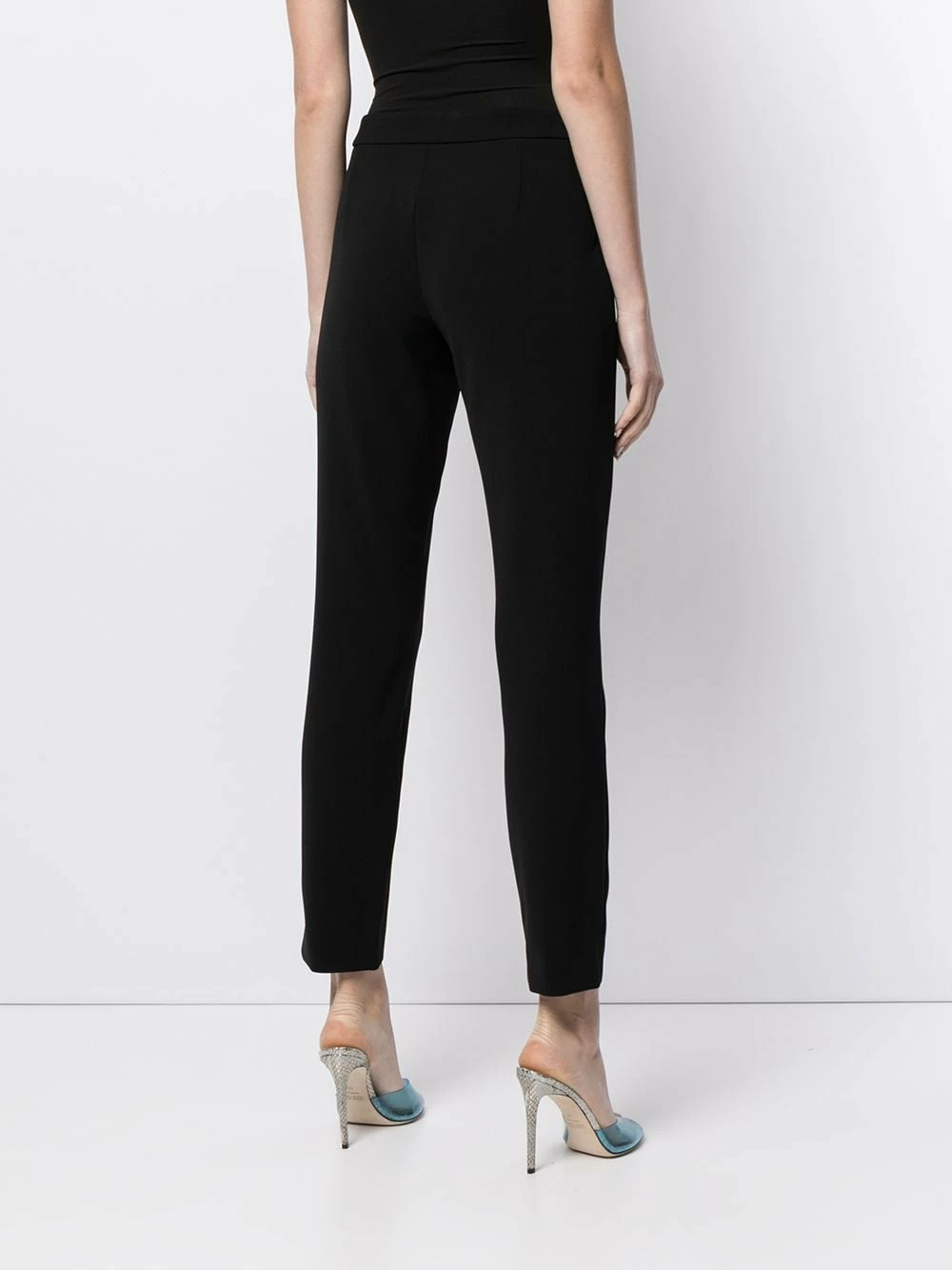 A classic that never goes out of style. Meet your new pair of elegantly comfortable trousers, this black high-waisted slim-fit pair from Moschino. You’ll want to wear it every day.