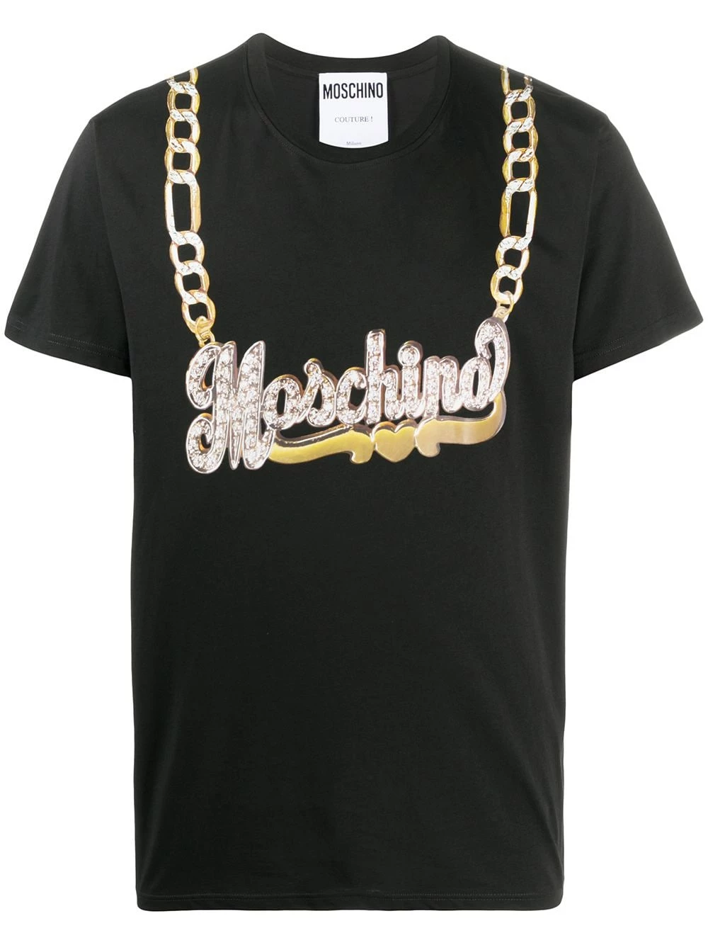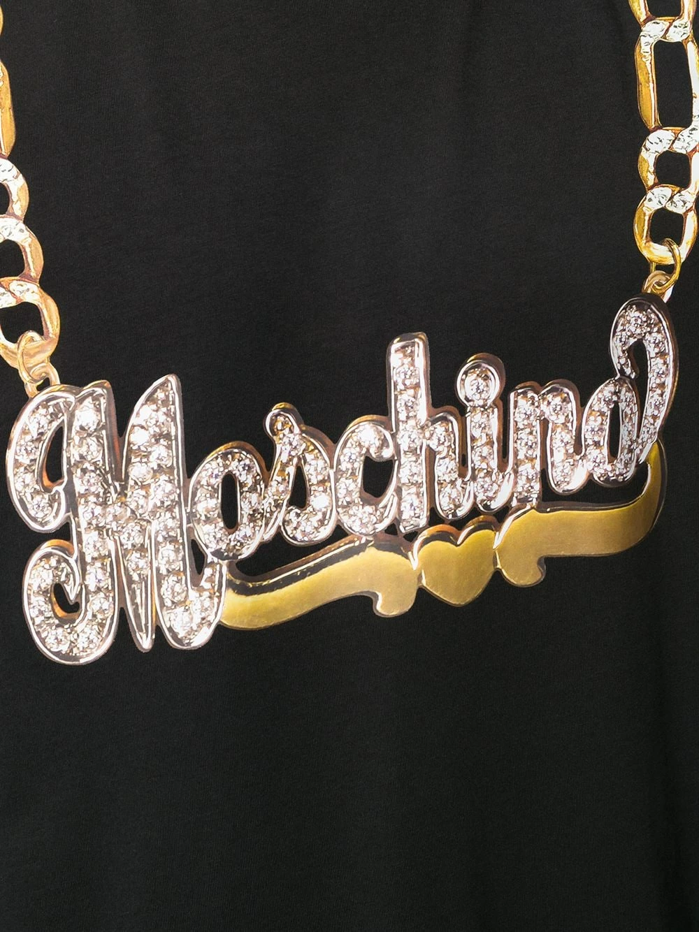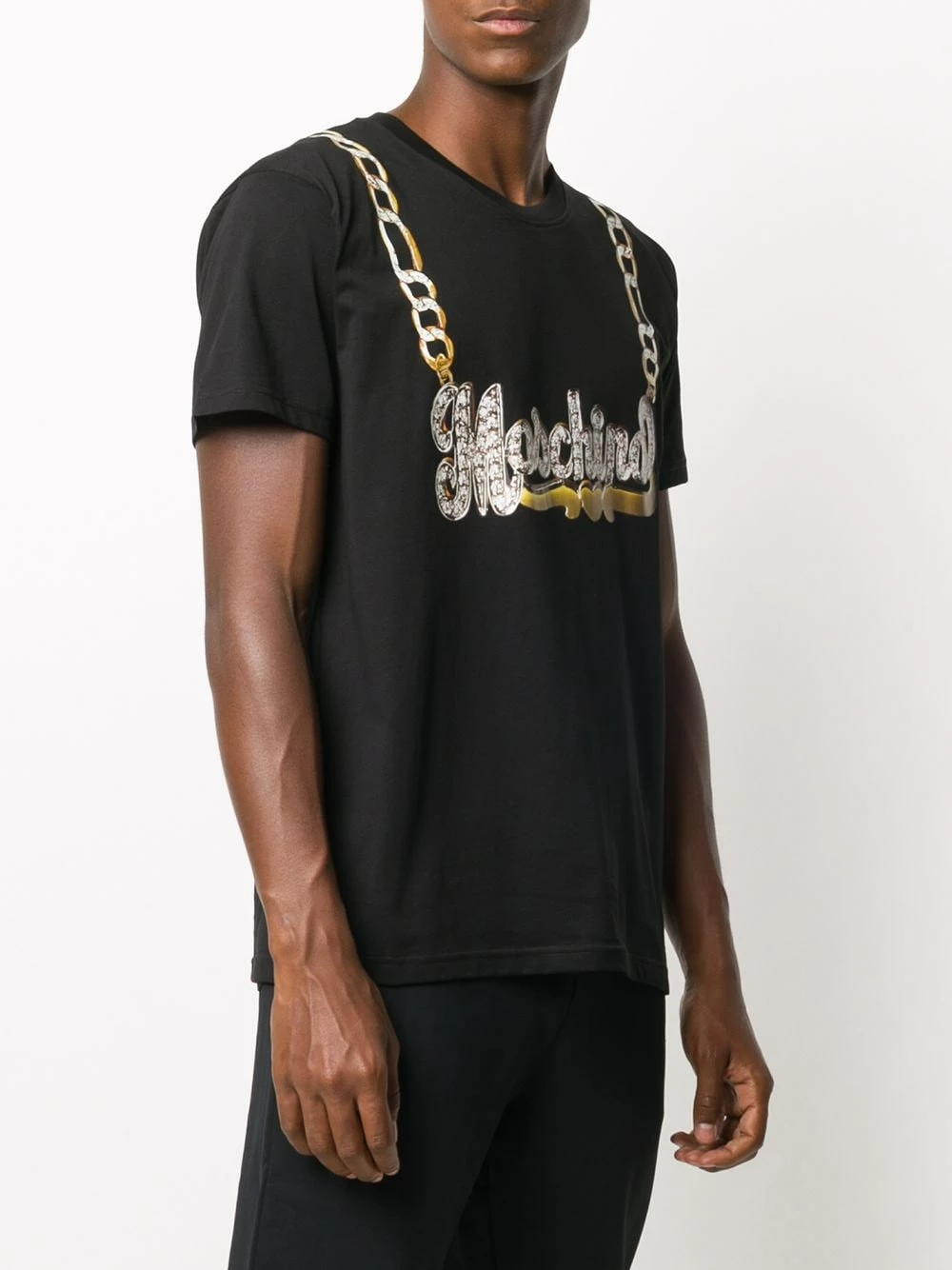 Add some bling to your casual look with this logo-chain print T-shirt from Moschino. Consider yourself embellished.